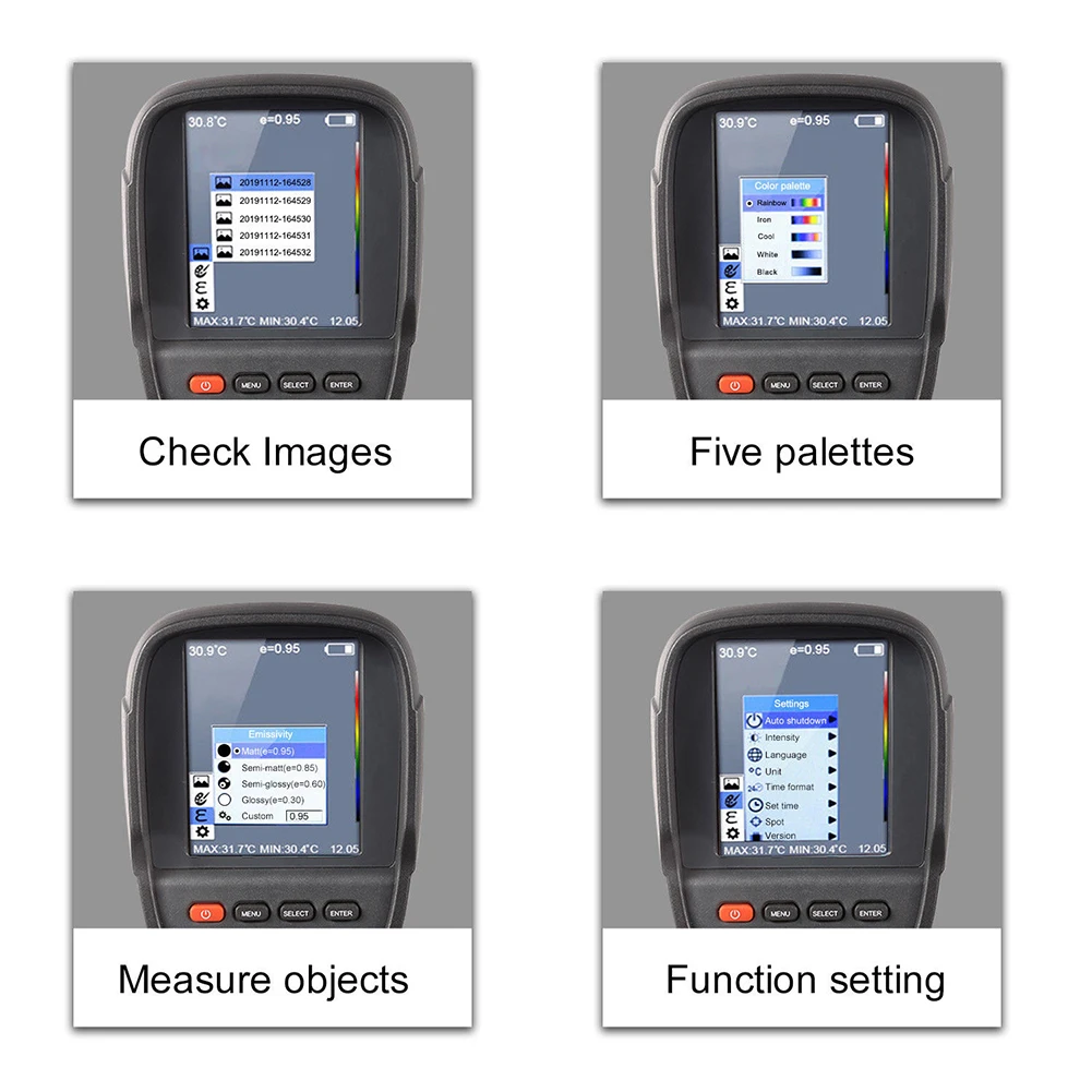 Описание:3,2 ''полноцветный светодиодный экран, позволяет детальный показ инфракрасный генерируется изображения;220x160 разрешение и 0,3 миллионов пикселей видно Разрешающая способность изображения, высокую четкость изображения;20 ~ 300/-4 ~ 572 измерением температуры диапазон, 2,5 Точность для более эффективной работы;Автоматическая настройка: 5 mintues/20 минут/не выключается автоматически;Изображения также могут быть перенесены на телевизор, компьютер или другие устройства для проверки;Широкое применение в медицинских, противопожарных, геологических, дорожных, сельскохозяйственных, электронных и других областях;Отдельная кнопка для конкретной функции, которая достаточно проста для включения или выключения, удаления или проверки изображений;Мини и портативный, прикрепленный мешочек позволяет более удобно носить;Эргономичная ручка, которую можно использовать и удобно держать;Спецификация:Дисплей экрана: 3,2 ''полноцветный экранРазрешение инфракрасного изображения: 220x160Видимый Разрешающая способность изображения: 0,3 миллионов пикселейТепловая чувствительность: 0,07Диапазон измерения температуры: -20 ~ 300(-4 ~ 572Точность измерения: 2,5 или 2.5%Охват длины волны: 8-14 мкмУгол поля/Самая короткая длина: 2735/0.5 мИзлучательная способность: регулируется от 0,1 до 10,0Режим: фиксированныйЧастота изображения: 8 ГцВид опции: полный инфракрасный и полный обзор видимого изображения с 25% длиной шагаОбъем хранения: Встроенный 4GФормат изображения: JPGИсточник питания: заряжаемые аккумуляторы 18650 (Встроенный)USB: Micro USB2.0Автоматическое выключение: 5 mintues/20 минут/не выключается автоматическиРазмер: approx.230x80x52ммВес: 289 гРабочая температура: от 0 до 50Температура хранения: от-40 до 80Влажность: <85RHПосылка включает в себя:1 x инфракрасный датчик температуры1 х кабель1 x Руководство пользователя1 x чехол для переноски1 x ремень для переноскиПримечания:1. Из-за различных настроек монитора и светильник эффект, фактический цвет элемента может быть s светильник ly отличается от цвета, представленного на снимках. Спасибо!2. Возможны отклонения в 1-3 см вследствие измерений вручную.