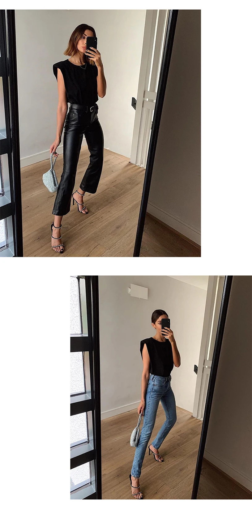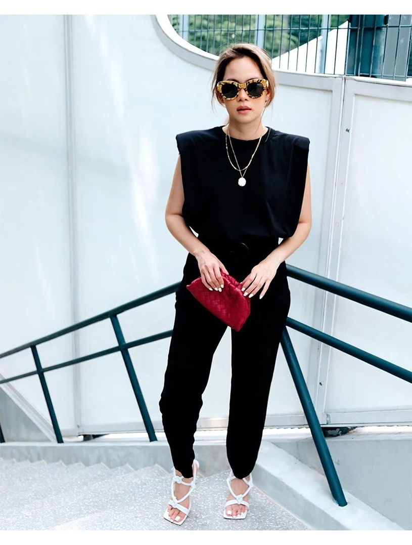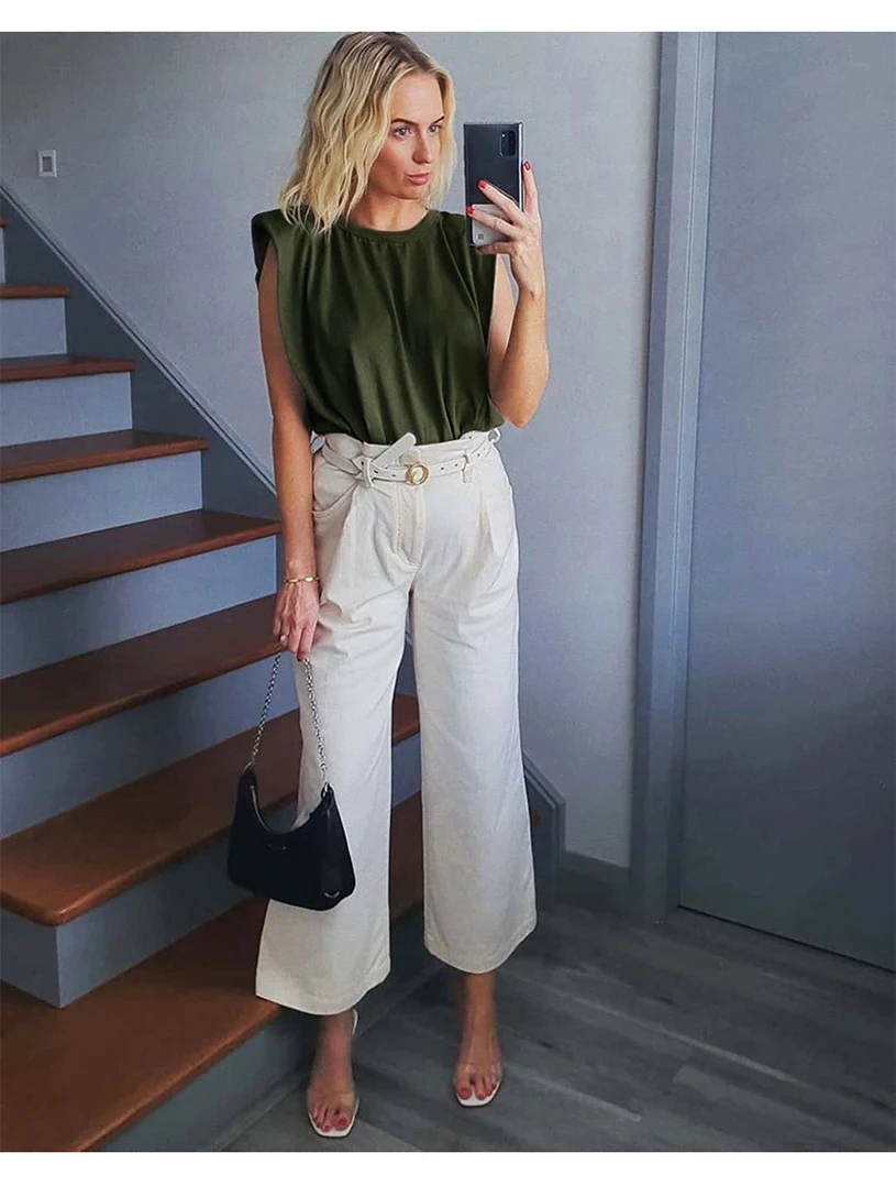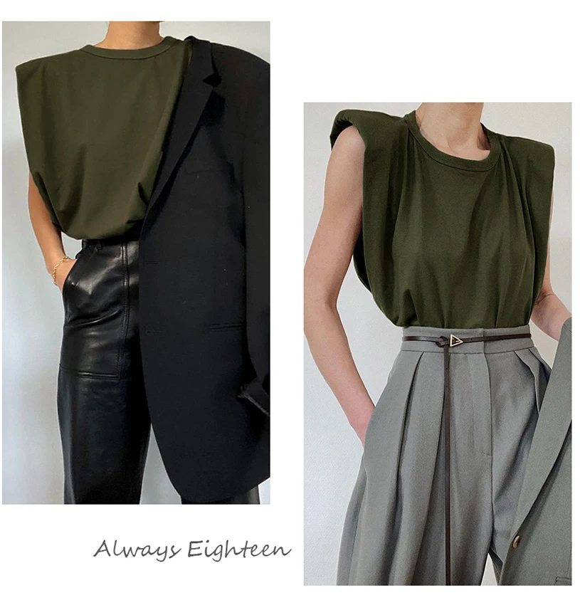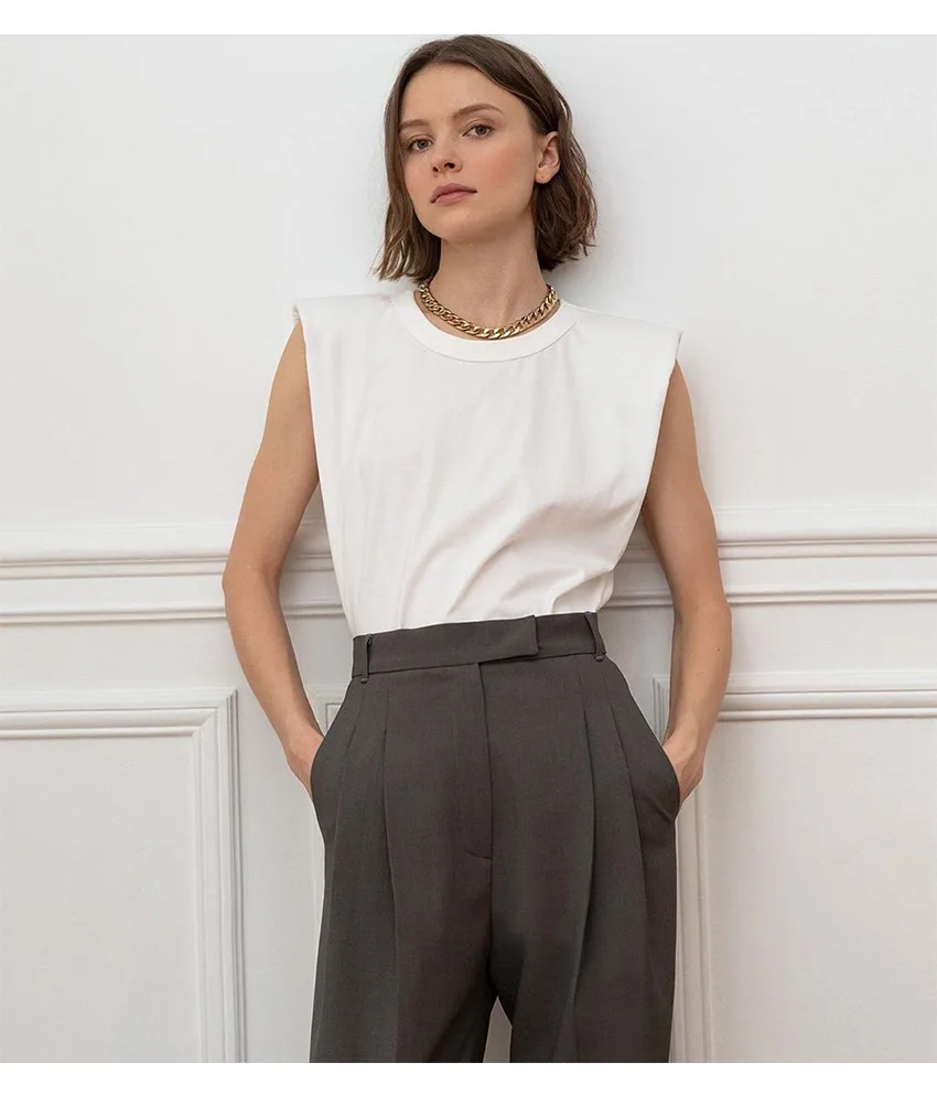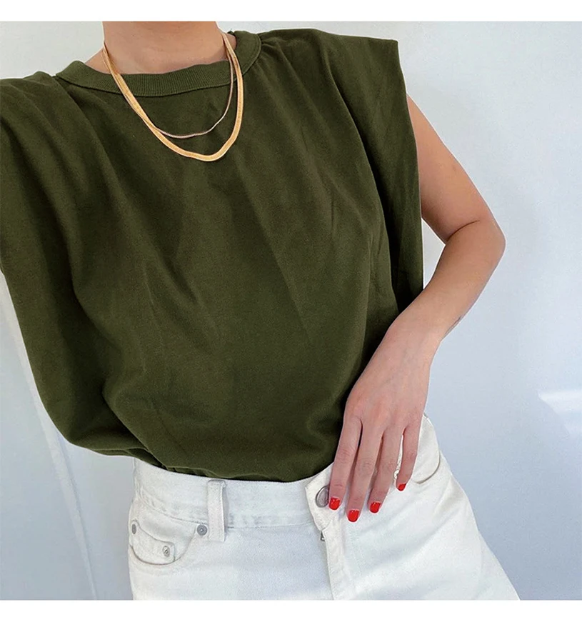 Модная элегантная свободная футболка без рукавов с наплечниками, ст...