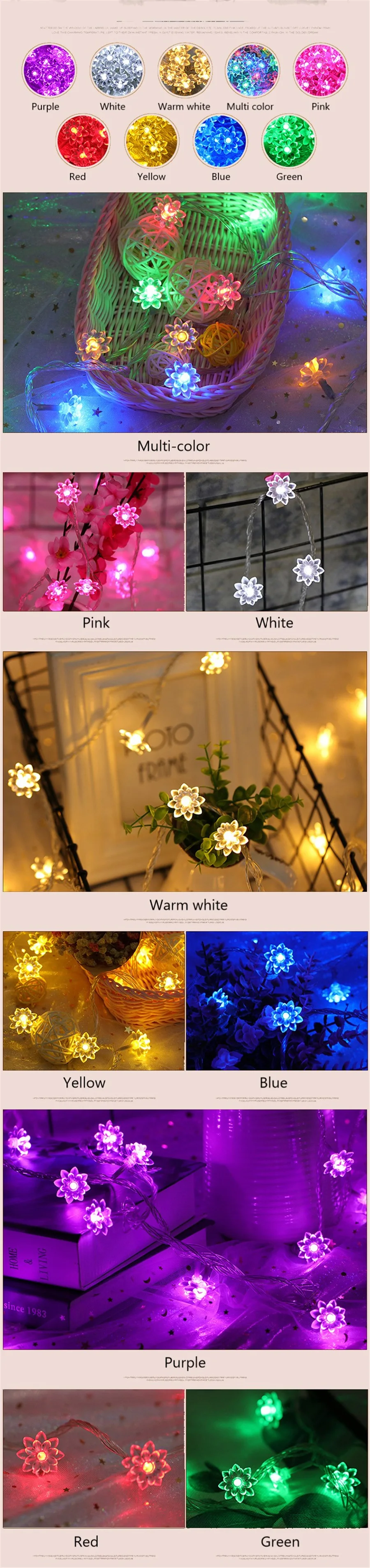 Купить сейчасХарактеристики: длина струнного светильник: 10 м 100 светодиодов, 3 м 30 светодиодов, 40 м 40 светодиодов, 40 м 40 светодиодов Питание от US110V Plug/ EU 220V Plug/ Battery box/ USB. Функция стиля вилки: 8 режимов воспроизведения (комбинация, в волнах, последовательных, долгах, погоне/вспышке, медленном выцветании, мерцании/вспышке и устойчивом включении). Функция батарейного отсека: стабильная работа и вспышка. Функция USB: постоянное включение. Светодиодный Цветок Диаметр: 3,4 см. Светодиодный интервал цветков: 10 см. Светодиодный материал цветка: мягкий пластик водонепроницаемый: светодиодный IP65, контроллер и батарейный отсек в не водонепроницаемый. 10 м шнур с хвостовой вилкой, может заканчиваться до конца 6 струн Примечание: При использовании на открытом воздухе, пожалуйста, закройте контроллер и подключите водонепроницаемые ткани или сумки, это поможет продлить срок службы струнных ламп.