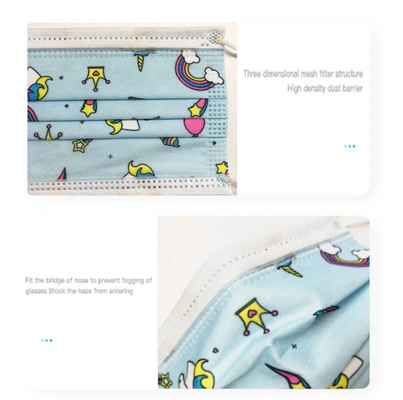 Маска детская Пасхальная 3-слойная с мультяшным единорогом, 50 шт.