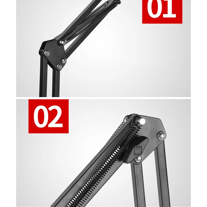Работает довольно хорошо, как на фото и может держать маленькие легкие предметы, такие как веб-камеры, микрофоны, мобильные телефоны в предоставленном зажиме.