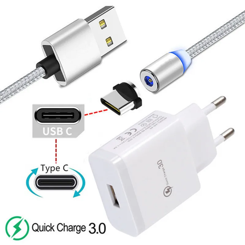 Быстрое зарядное устройство QC 3,0 USB, Магнитный зарядный кабель т...