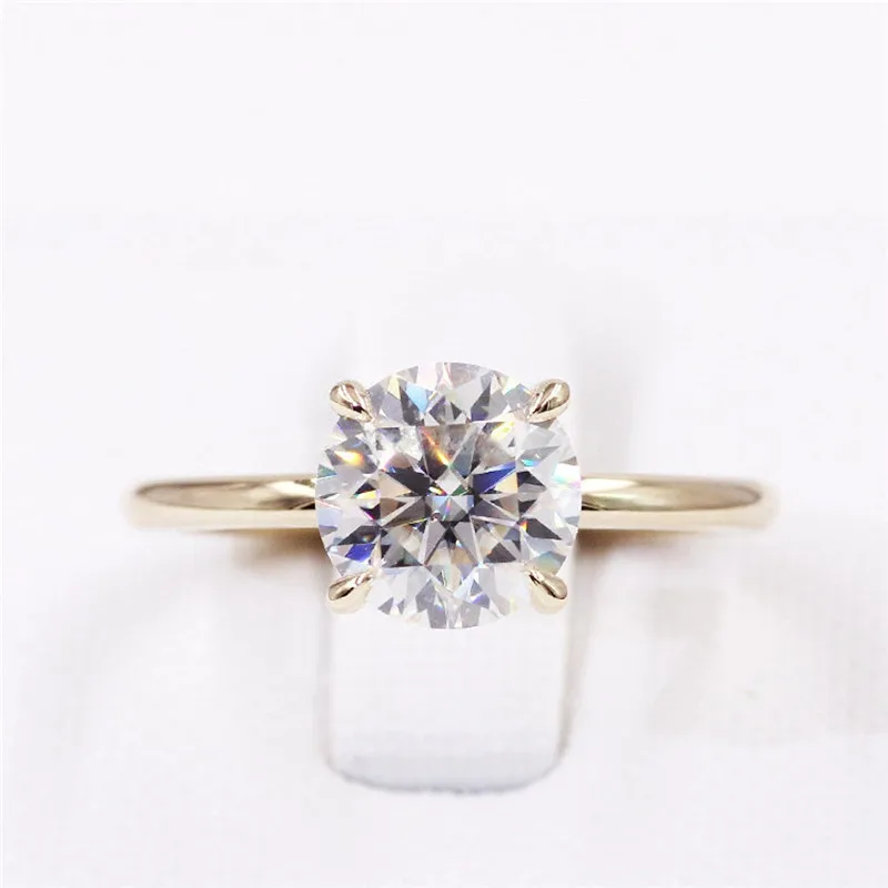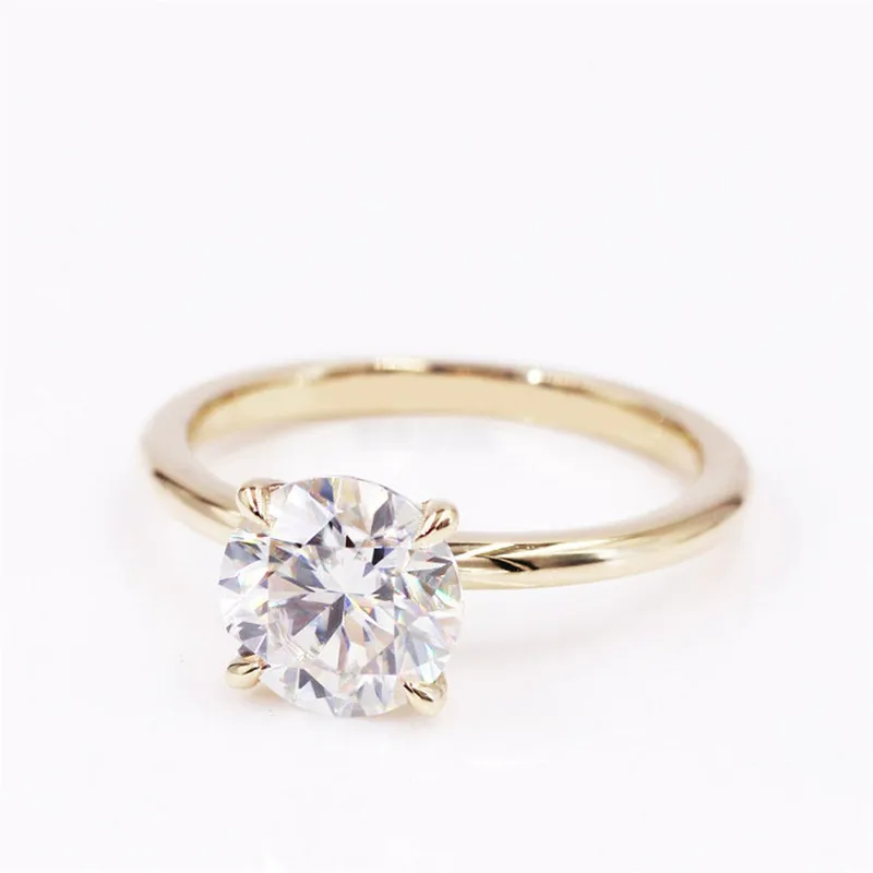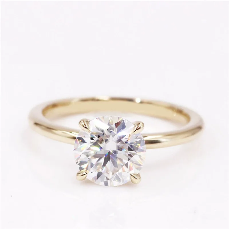 CxsJeremy 2.0Ct Круглый Пасьянс Moissanite помолвка Ring14K желтое золото Moissanite бриллиантовый свадебный браслет Подарок на годовщину