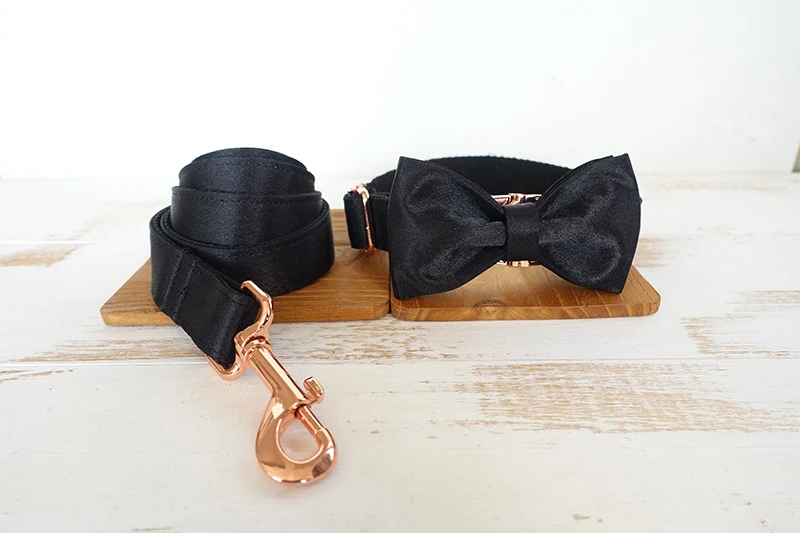 Персонализированный черный рыцарский собачий ошейник с поводком и галстуком-бабочкой, золотая металлическая пряжка, Бесплатная гравировка, табличка с названием для маленьких, средних и больших собак