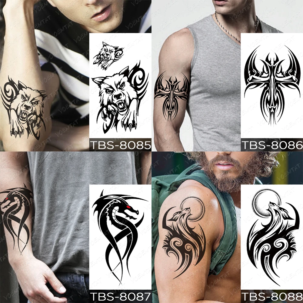 Водостойкая Временная тату-наклейка, Лев, волк, флэш-тату, тигр, цветы, лиса, боди-арт, переводка на руку, искусственная татуировка для женщин и мужчин