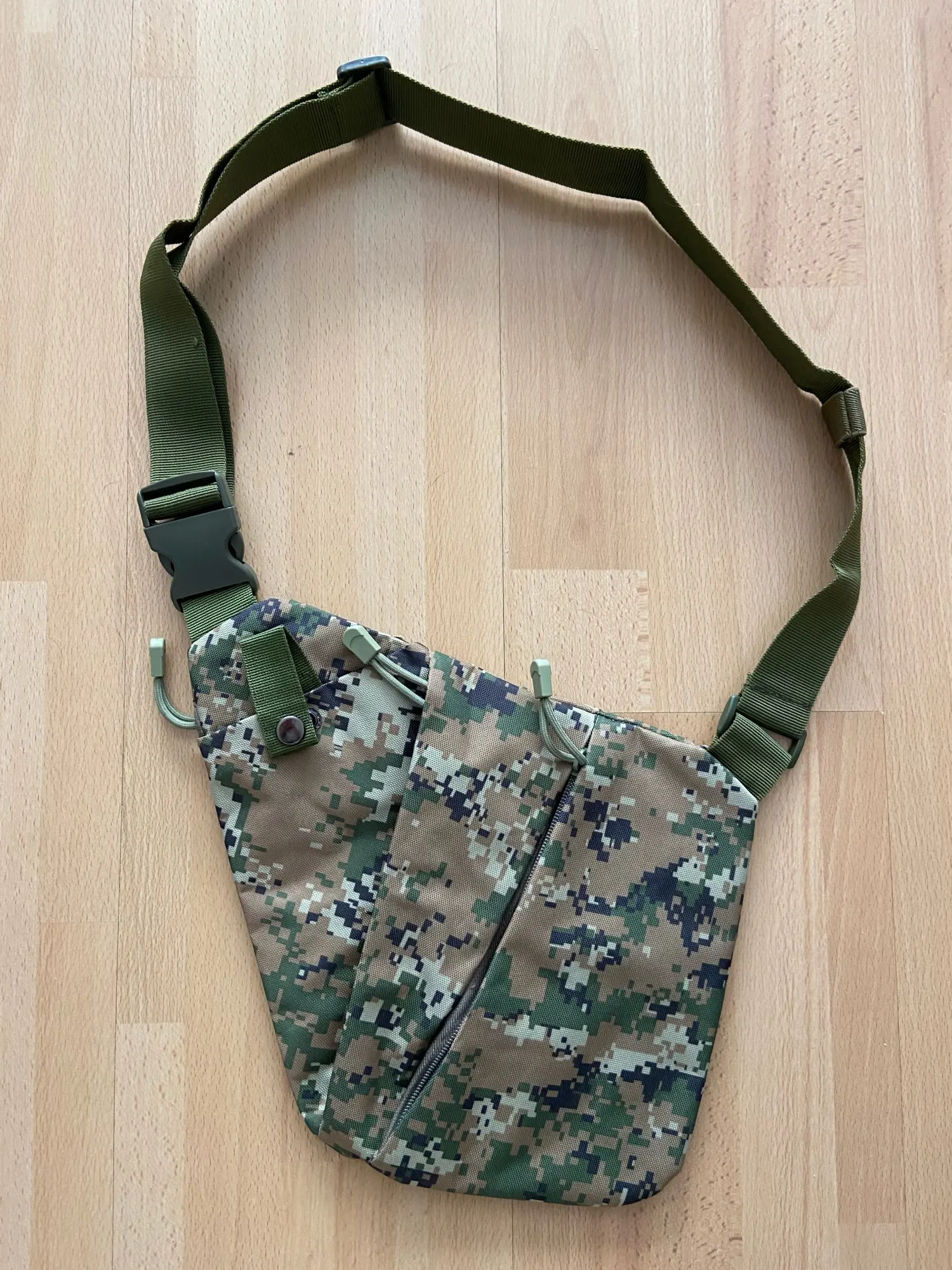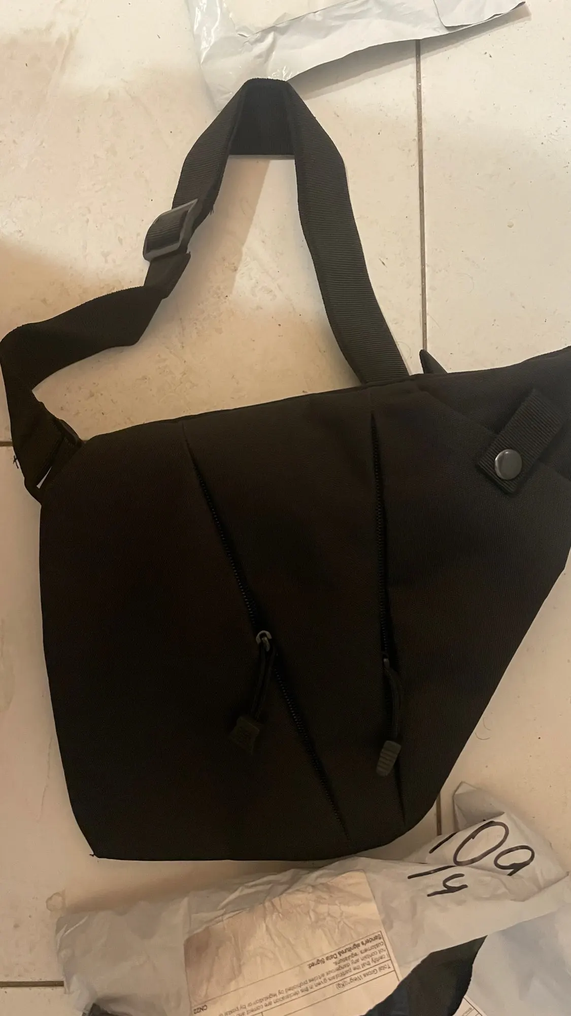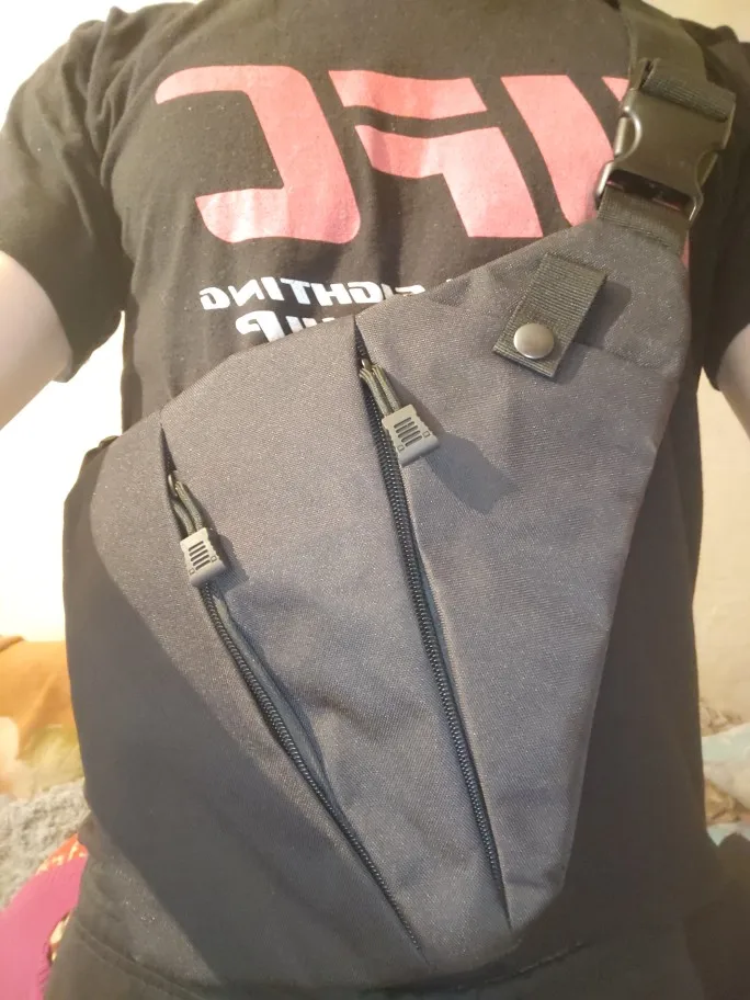 Сумку доставили за 13 дней. Упаковано хорошо. Сама сумка сделана добротно: плавные молнии, крепкие швы (по крайней мере на вид, но тут только время покажет). Идеальный вариант для тех, кто не хочет на прогулку брать большую / среднюю сумку или рюкзак, но и не хочет распихивать вещи по карманам. Хорошо прилегает к телу, по курткой практически не ощущается и не мешает движениям.