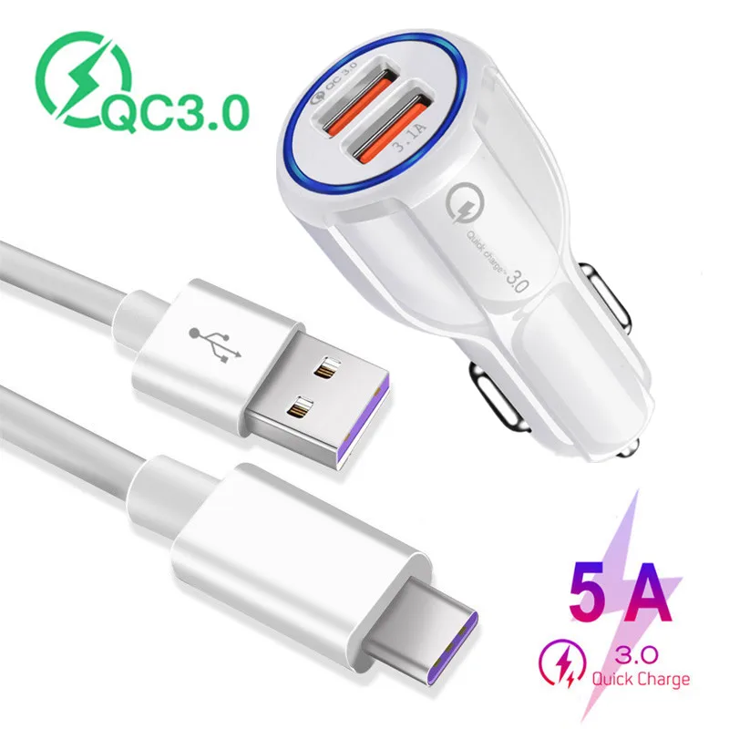 Популярное автомобильное зарядное устройство с двумя портами QC3.0,...