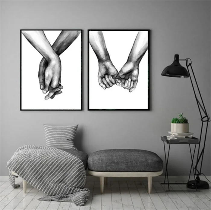 Черно-белые холщовые картины с надписями удерживающие руки, настенное украшение для гостиной, домашний декор без рамки