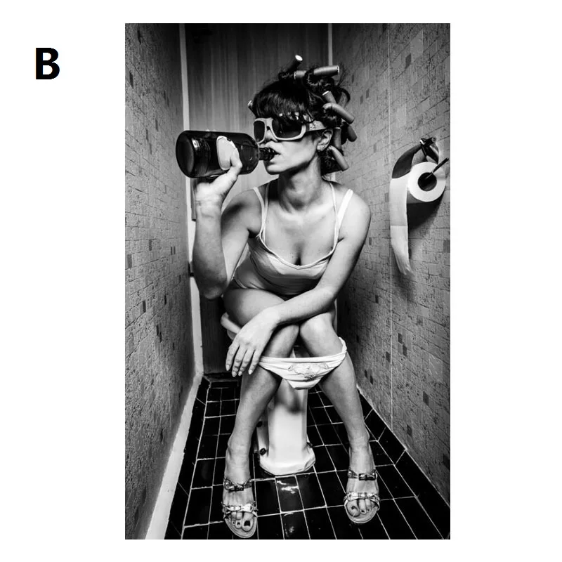 Современный плакат на стену унитаза с сексуальной женщиной, Художественная Картина на холсте с изображением девушки, курительницы и питьевой в комнате отдыха, картина для домашнего декора