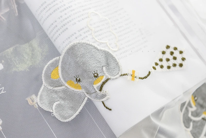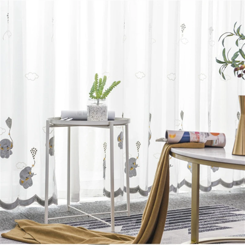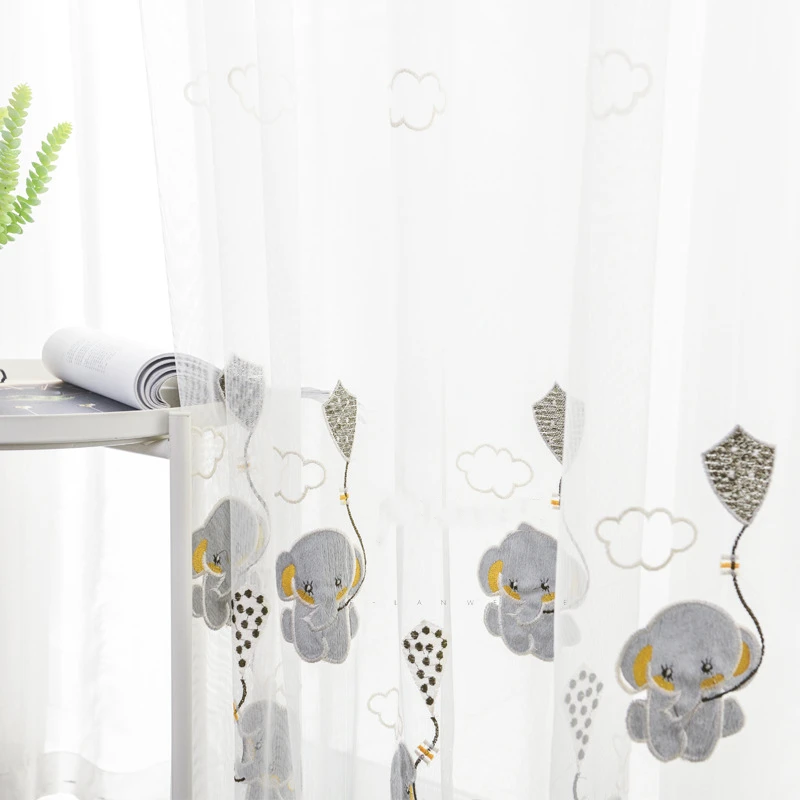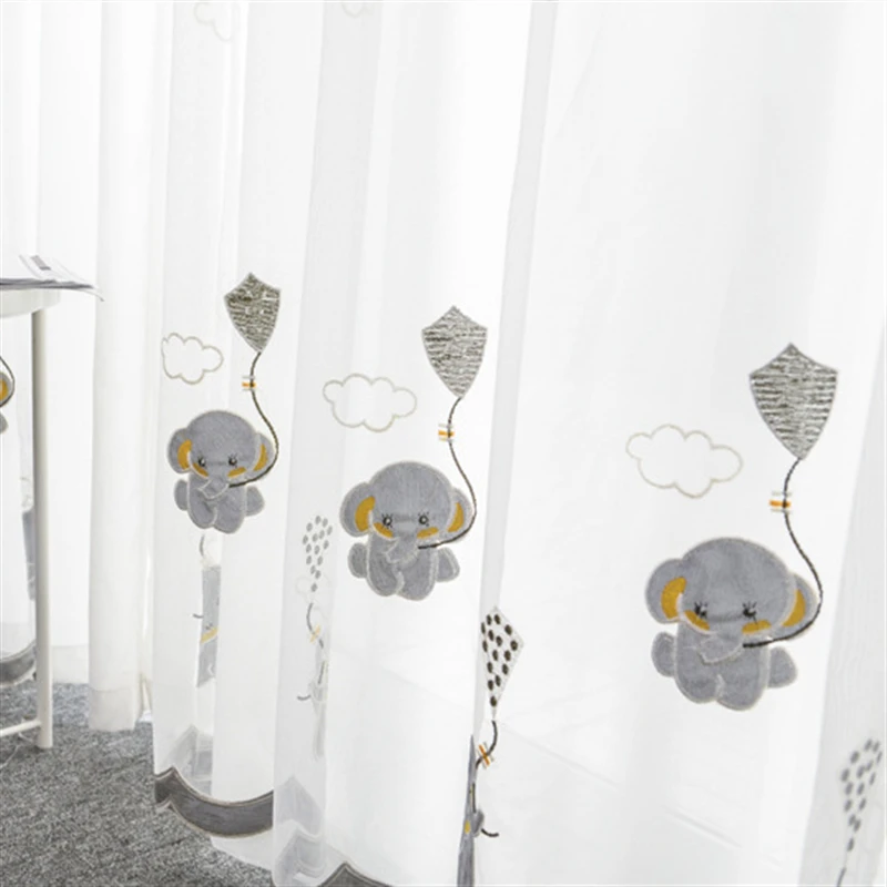 Современные белые тюлевые шторы с вышивкой в виде слона, занавески для гостиной, детской комнаты, спальни, Мультяшные прозрачные Занавески, модная вуаль