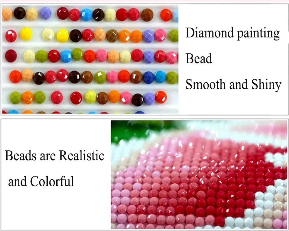 Круглая алмазная живопись делает процесс алмазной живописи проще и менее разочарован. Все стразы алмазные бусины имеют 26 граней, что делает бусины более блестящими, вся картина ощущается более трехмерной и визуальной. Более яркие и блестящие, чем алмазы из смолы, круглые алмазные бусины5D алмазная картина идеально подойдет для украшения вашей гостиной, спальни, офиса, ресторана, бара или любого другого места, чтобы подобрать разные стили украшения. Это прекрасный подарок на день рождения и праздники. Кроме того, это не только отличная идея для вышивки крестиком, вышивки любителей рукоделия, но и прекрасный подарок для семьи и друзей.