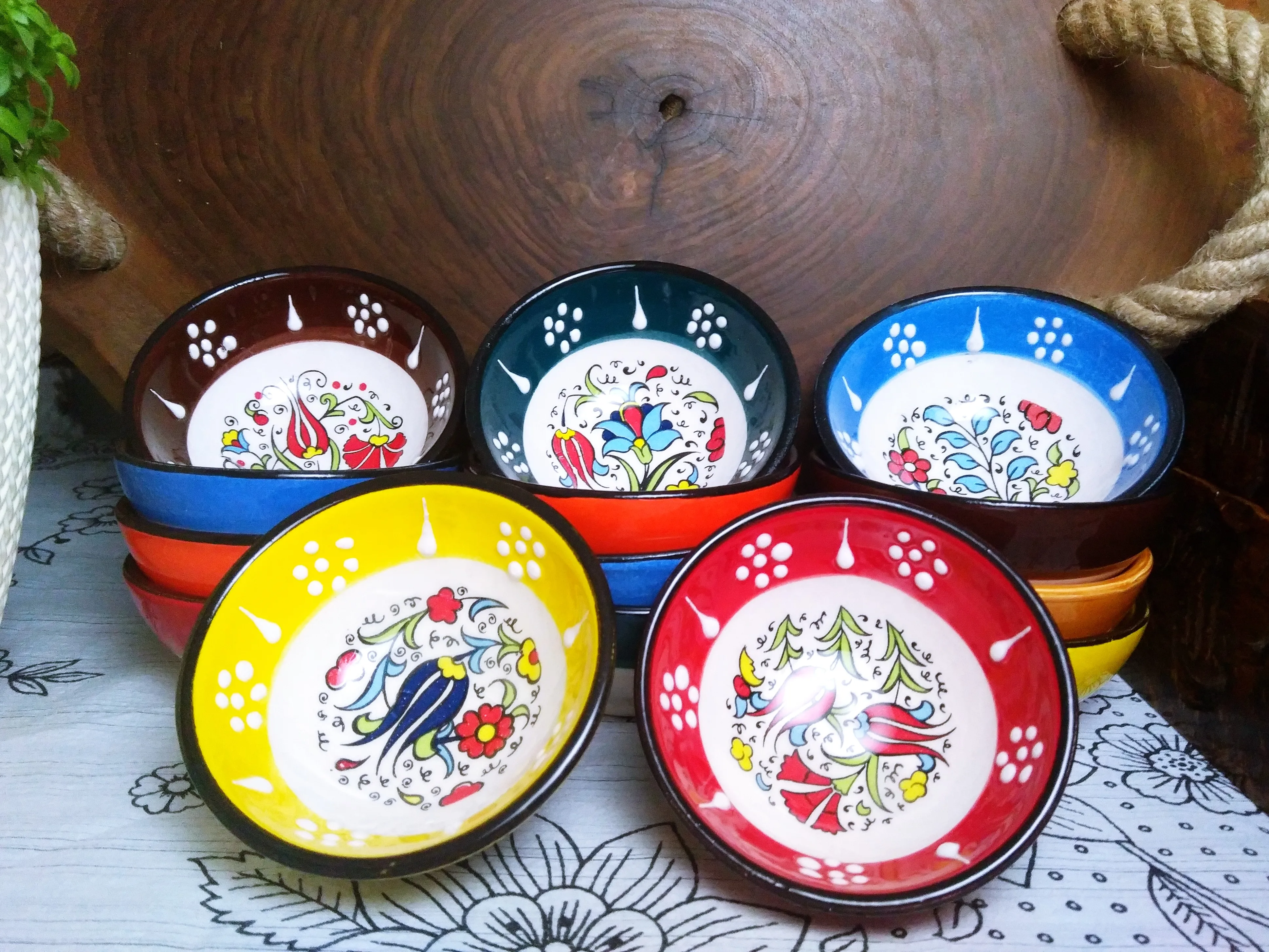 Вы можете увидеть, как люди «плитка», сделанная в Турции по этой ссылке. https://www.youtube.com/watch?v=HpT_-gN51p4. Можно стирать в стиральной машине. Это художественный продукт, поэтому могут быть некоторые различия в чаши. По вашему желанию мы можем отправить различные 2 цвета для каждой чаши.