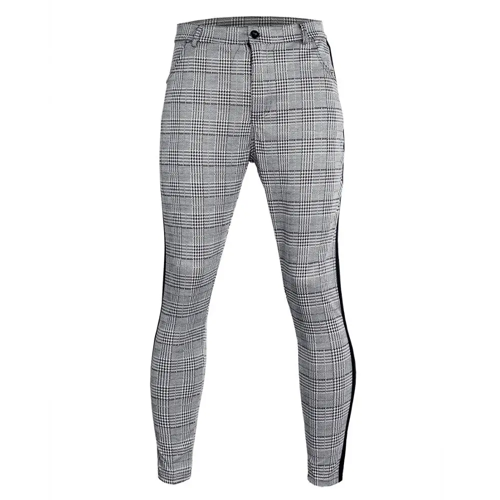 Модные мотоциклетные брюки, повседневные брюки, мужские клетчатые брюки с маленькими ногами, эластичные леггинсы