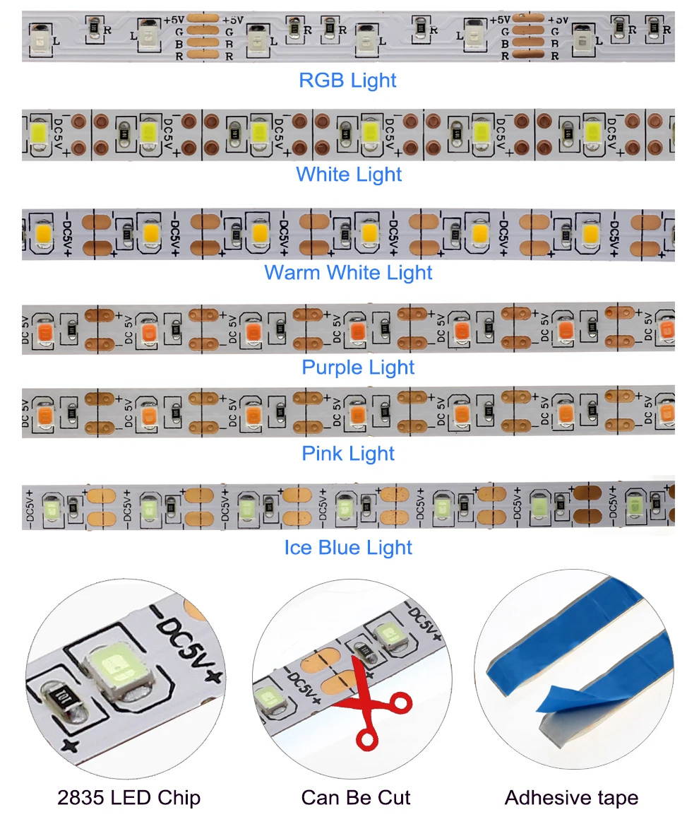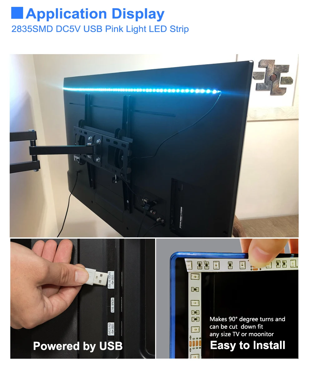 Светодиодная лента USB для телевизора, 1 м, 2 м, 3 м, DC5V, гибкая светодиодная лента 2835 RGB, фоновая подсветка для экрана телевизора