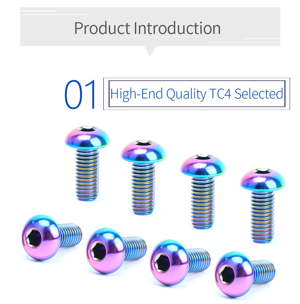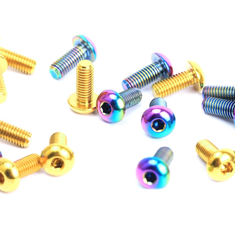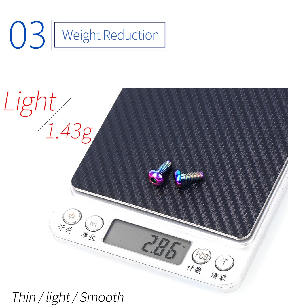 Инструмент: шестигранный ключ 3 мм Крутящий момент: 3-4нм Вес нетто: 1,43 г Материал: титановый сплав TC4 Цвет: Титаниум. Золотой, Радужный, черный Применение: крепление бутылки с водой и воздушного насоса