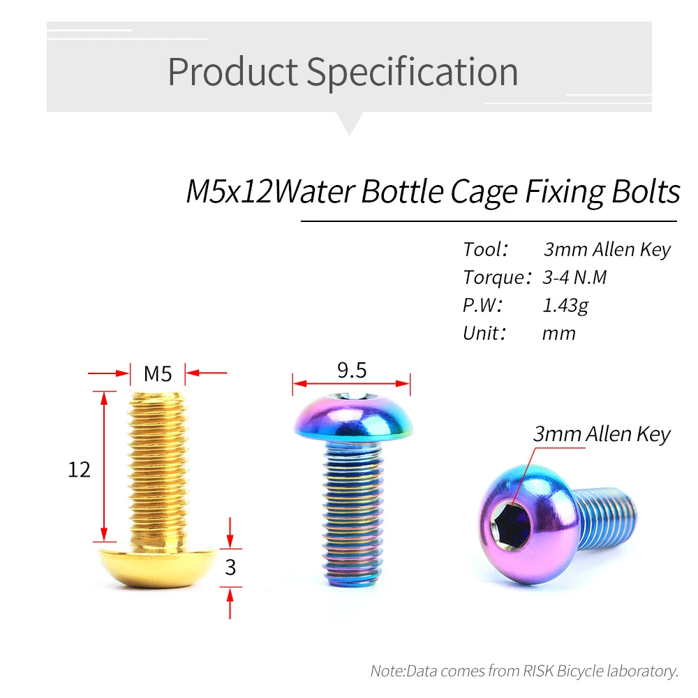 RISK 2 шт.кор титанового сплава . дорожный горный велосипед из M5x12 крепление для бутылки воды крепление болтов держатель воздушного насоса фиксированные винты