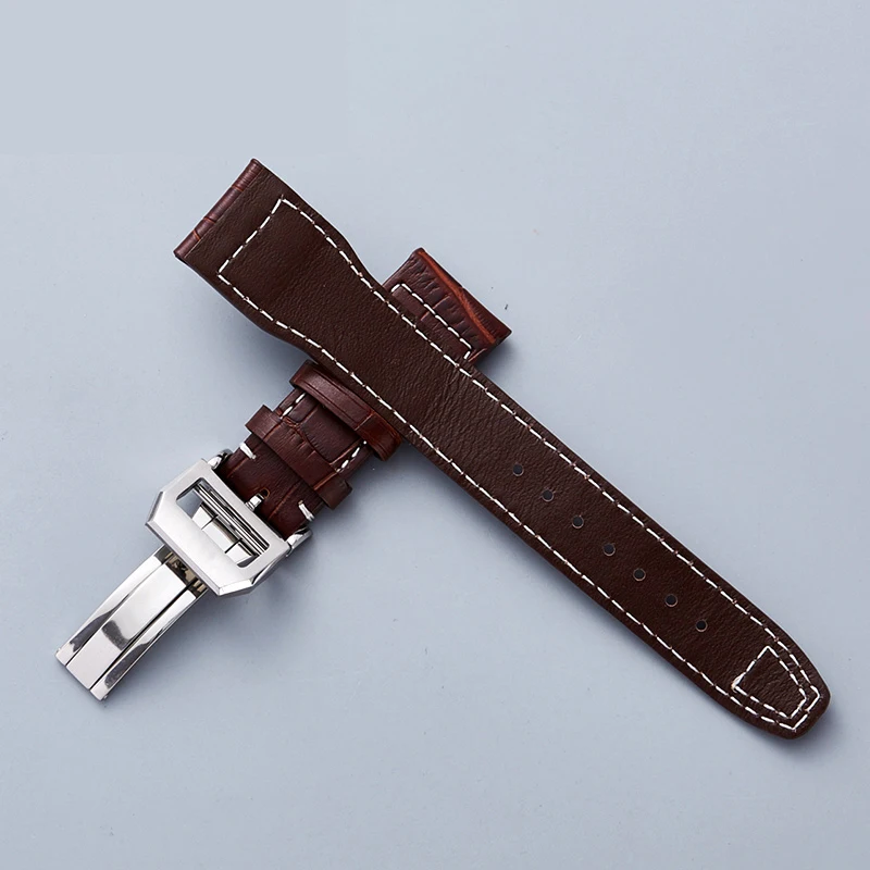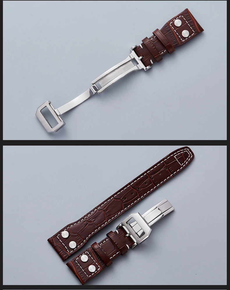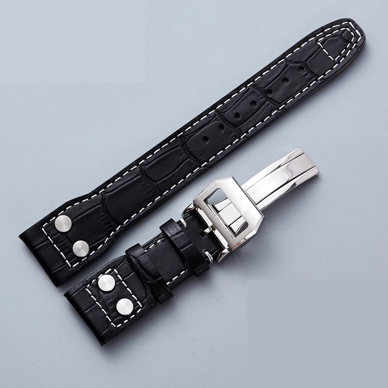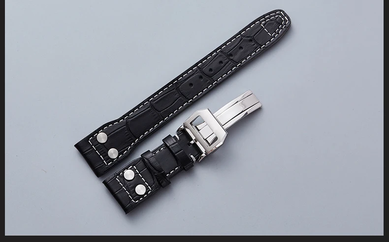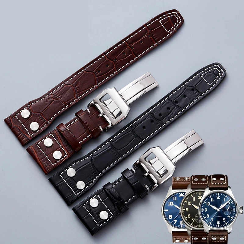 Ремешок для часов IWC Pilot Mark series из натуральной кожи, Аксессуары для наручных часов, мужской браслет из воловьей кожи с заклепками, 22 мм, черный коричневый