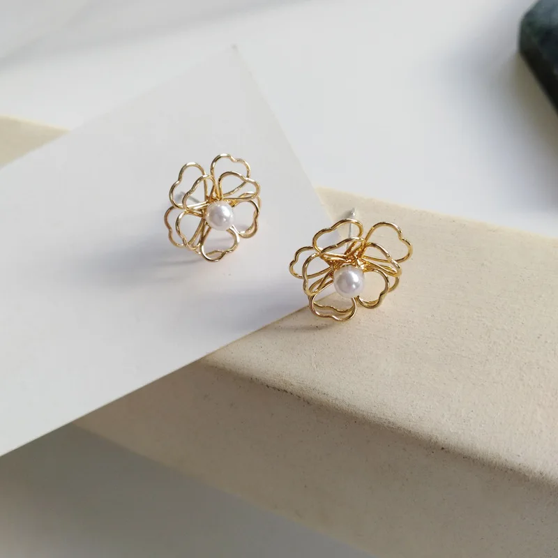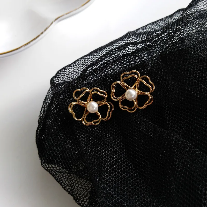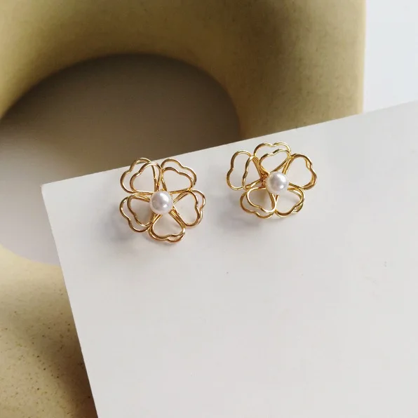 Южнокорейские ретро серьги ракушки цветы металлические листья S925 ...
