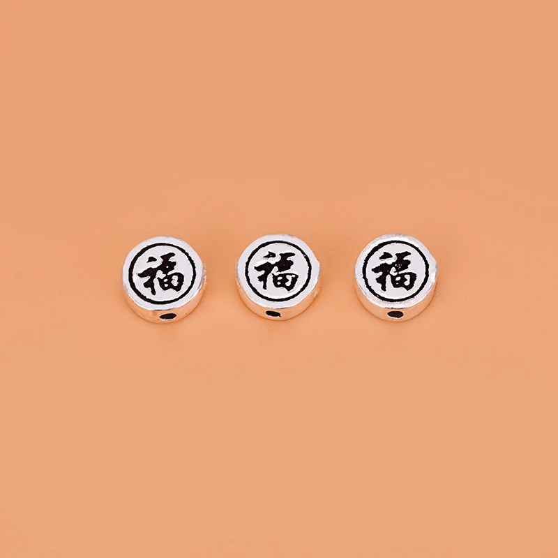 10 шт., круглые плоские бусины из серебра 925 пробы