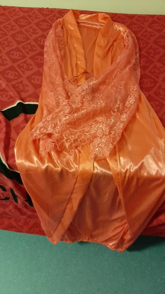 До Чебоксар дошло примерно за 10 дней (может, даже меньше) почтой России. Халат приятный на ощупь, кружево не царапает, мягкое. Правда пояс не такой широкий, как на фото, но это мелочи. На параметры 94/63/101 взяла размер S. На мой рост 163 см оказался длинноват как сам халат, так и рукава. Но рукава, вроде, хорошо держатся, когда закатываешь. Товар могу посоветовать. Недорого и отлично сделано ;)