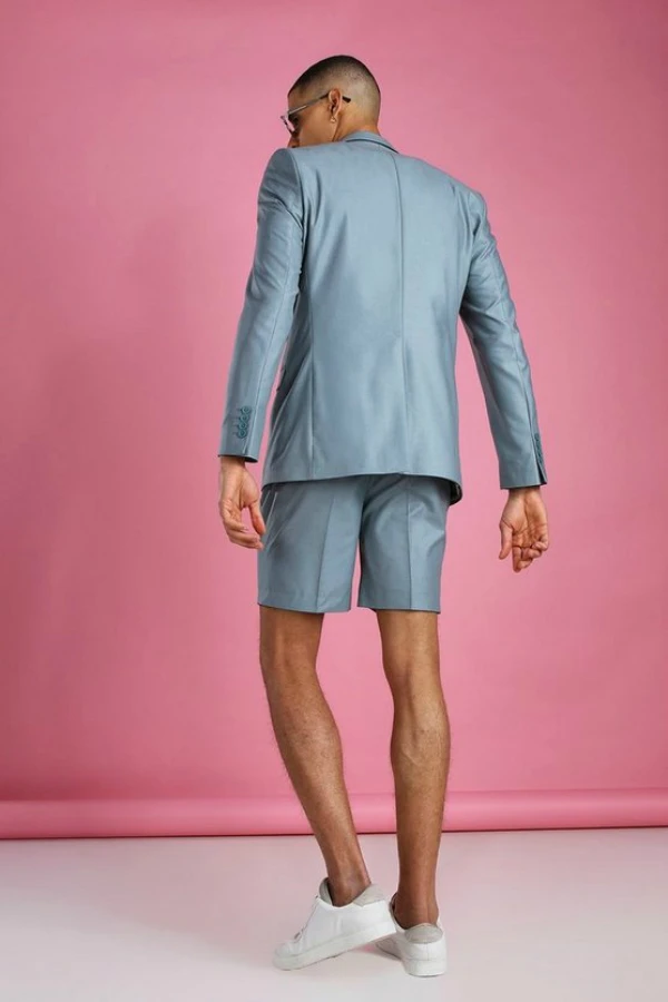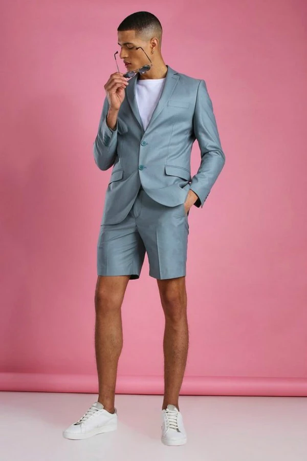 Летний короткий мужской костюм из 2 предметов, облегающий костюм на двух пуговицах для жениха, официальная одежда для выпускного вечера, блейзер (пиджак + брюки)