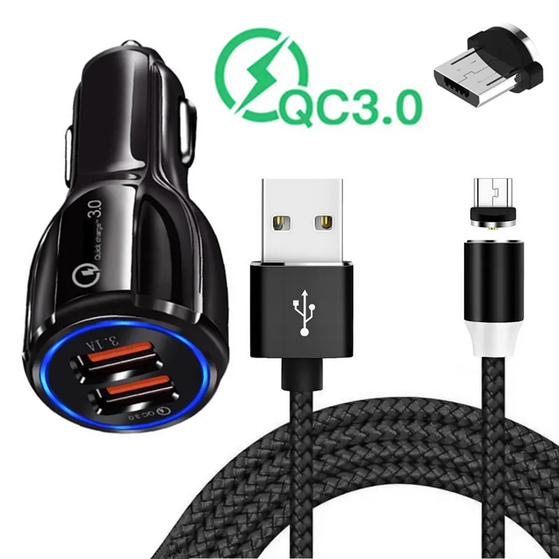 Быстрое Автомобильное зарядное устройство QC 3,0 USB, магнитный каб...