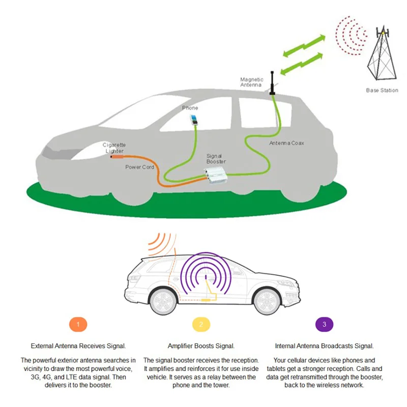 Автомобильный комплект с магнитной плетью и антенной 900 1800 2100 МГц, трехдиапазонный усилитель сигнала мобильного телефона, Усилитель сотового ретранслятора