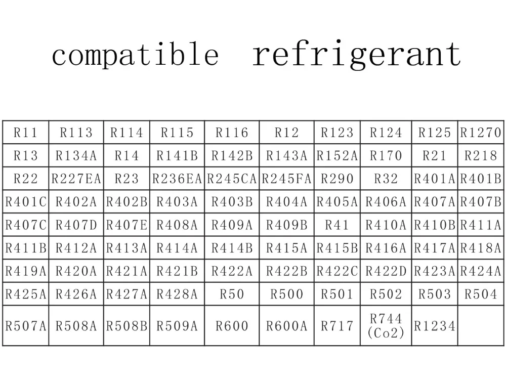 Описание:Интеллектуальный электронный хладагент-это вспомогательный инструмент для установки, тестирования и обслуживания холодильного оборудования, такого как кондиционеры и холодильное хранилище. Прибор имеет двойной тест давления, двойной температурный тест (нужен тестовый зажим, не входит в комплект), цифровое считывание, многофункциональное переключение, многофункциональная функция и встроенная база данных хладагента. В приборе используются высокопрочные инженерные пластмассы и гибкий нескользящий Силиконовый дизайн, вся машина прочная и удобная для удержания. Встроенный 32-битная цифровая обработка блок и высокой точности система сбора и обработки данных блок, которые ставят высокие данные и стабильности во всем мире. Большой размер жидкокристаллического дисплея, ЖК-дисплей задняя светильник поддержки, отображение данных четкий и удобный для чтения, удобный светильник операции. Долговечный клапан, 1/4 дюймовый стандартный дизайн интерфейса для обеспечения долговечности и универсальности прибора.Прибор может измерять двойное давление (манометрическое давление) одновременно, а также двойное измерение температуры (требуется тестовый зажим, не входит в комплект), с автоматическим мульти-единичным преобразованием давления, автоматическое преобразование температуры Цельсия/Фаренгейта, чтобы облегчить различные потребности. Встроенный 89 видов хладагента давления-испарения температуры базы данных, также рассчитать перегрев охлаждения, чтобы облегчить прямое считывание данных рабочих процессов. Также он проверяет процент измерения вакуума; Измерение утечки давления, запись Скорости времени утечки. Заслуживает того, чтобы этот многофункциональный, точный и просто управляемый цифровой коллектор позволял вам делать работу правильно.Особенности:EC/EN61010-1 стандарты безопасности для проектирования и производства.1) давление, измеренное цифровым манометром, является манометром.2) Диапазон испытаний давления от-101кпа до 6мпа (-0.1бар до 60бар).3) Предельное давление 10 МПа (100 бар).4) Максимальное рабочее давление стандартного шланга составляет 600 фунтов на кв. дюйм (приблизительно 4,13 МПа, 41,3 бар). Предельное давление составляет 3000 PSI приблизительно 20,68 МПа, 206,8 бар).5) Пожалуйста, подтвердите номинальное значение давления тестируемого оборудования перед тестированием. Не используйте его, если он превышает диапазон инструмента. Также для DY517A, если упакованШланги не соответствуют требованиям к давлению, вы можете использовать подходящие замены для тестирования.6) не используйте и не храните прибор при высокой температуре, высокой влажности, легковоспламеняющихся, взрывоопасных и сильных электромагнитных полях.7) Пожалуйста, не изменяйте внутреннюю цепь прибора, чтобы избежать любого повреждения инструмента или опасности.8) Пожалуйста, носите квалифицированное защитное оборудование для защиты пользователя во время тестирования.9) Пожалуйста, используйте прибор в хорошо проветриваемой среде для предотвращения вдыхания токсичных газов.Характеристики:Размеры: 170*110*50 мм/6,69*4,33*1,97"Вес: 3 кгИспытание на давление: манометрЕдиница измерения давления: кПа; МПа; Бар; Инхг; PSI.Диапазон измерения давления: 0 кПа ~ 6000 кПаРазрешение испытания на давление: 1 кПаДавление тест точности: +/-0,5%(FS)+ 5dgtПредел перегрузки давления: 10000 кПа (10 