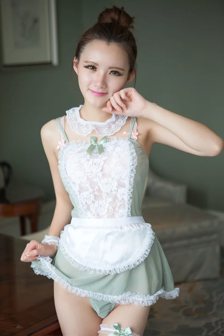Посылка: 1 головной убор; 1 платье; 1 стринги, 1 кольцо на шею, 2 браслета, 1 фартук