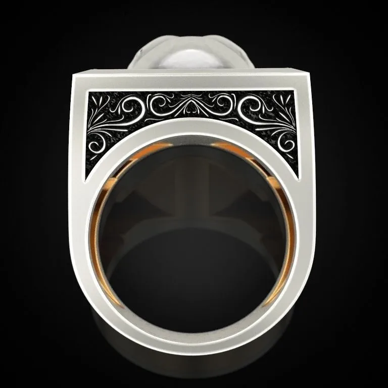 Кольцо мужское круглое из нержавеющей стали 316L с изображением чер...