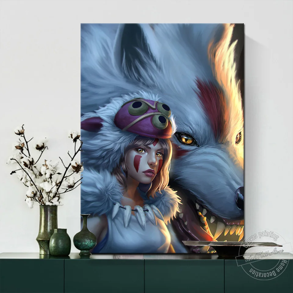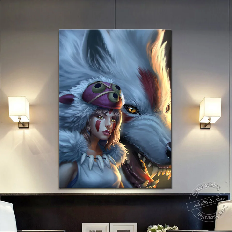 Без рамки Мононоке химе мультфильм картина Принцесса Мононоке постер Моро Волк настенные картины для детской комнаты декор холст картина
