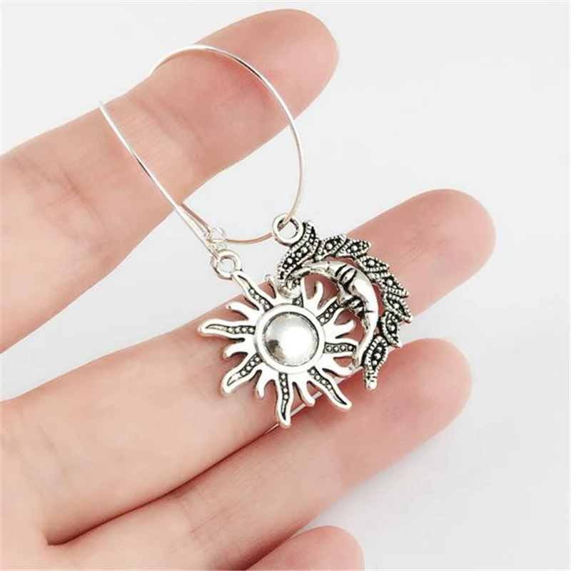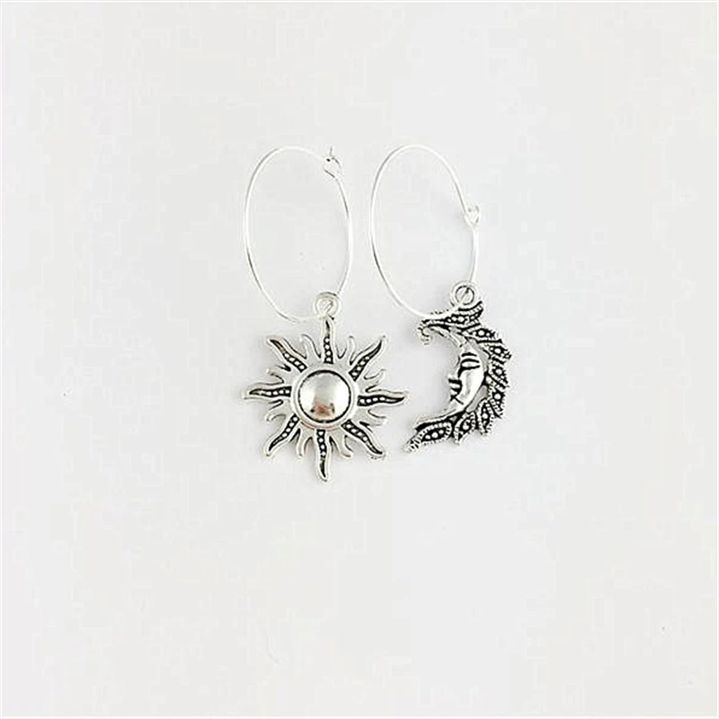 Серьги-кольца несочетающиеся, небесные украшения, кольца в виде Солнца и Луны, готические украшения для нее, астрологический подарок, астрономический аксессуар