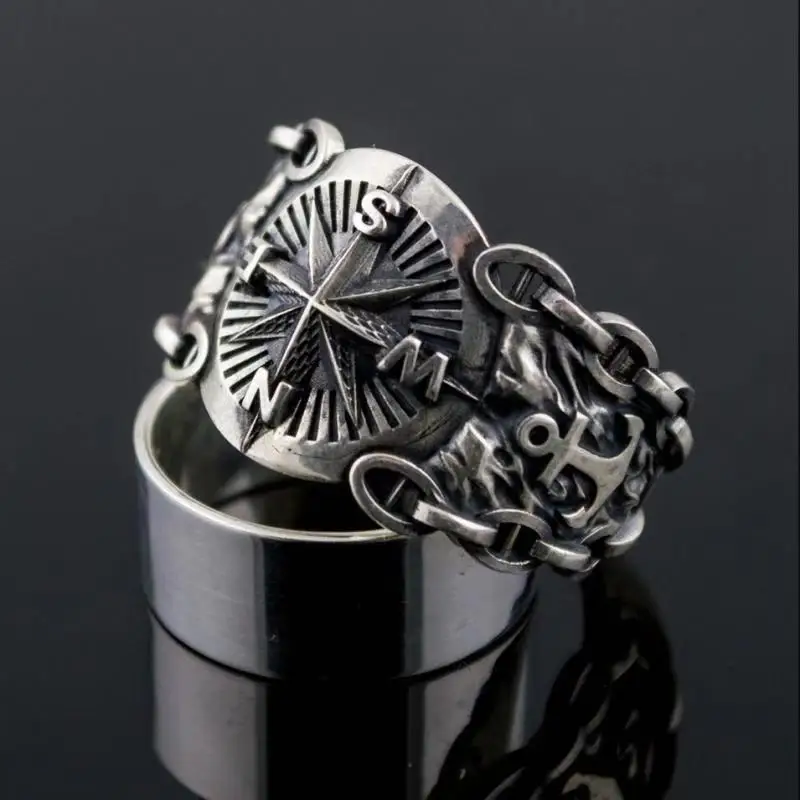 Винтажные металлические кольцо с компасом викингов для мотоциклетной вечеринки, пиратский кольцо с компасом в стиле Северной Европы, мужские ювелирные украшения на память