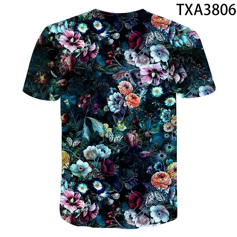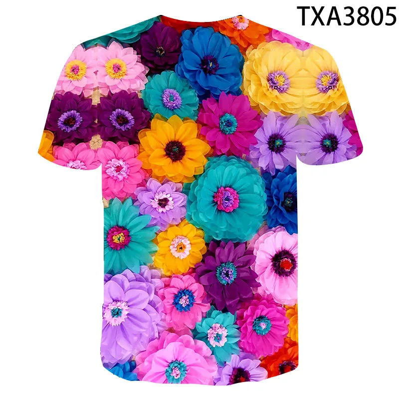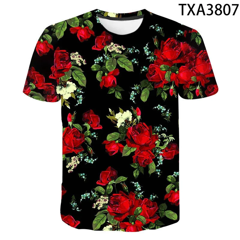 Футболка с цветочным принтом для мальчиков и девочек, Повседневная модная рубашка с коротким рукавом, с 3D принтом, топы, футболки, лето