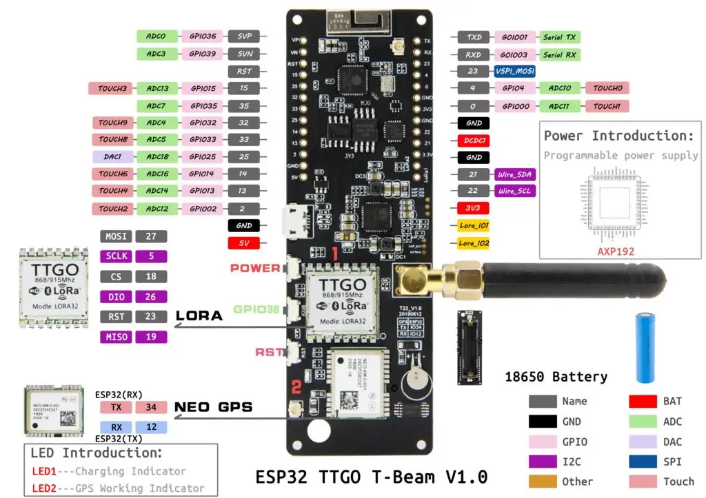 TTGO T-Beam ESP32 LORA 433 МГц 868 МГц 915 МГц 923 МГц WiFi беспроводной Bluetooth модуль LORA32 GPS NEO-M6N IPEX 18650 Держатель батареи