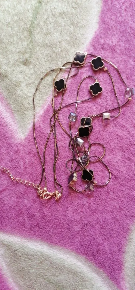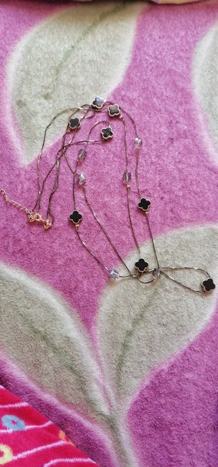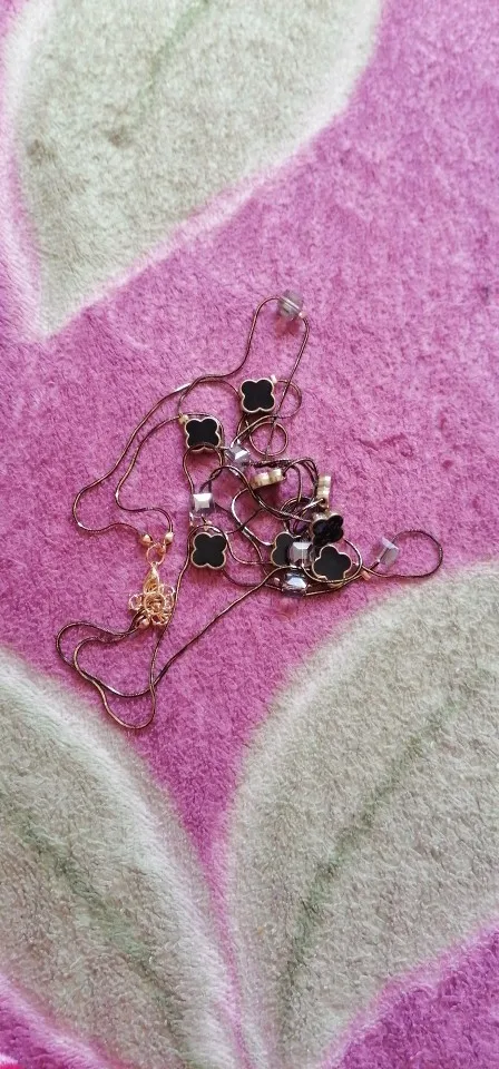 Очень быстрая доставка! Всего две недели! Выглядит красиво, цепочка черная и золотая, Мерцающая. Выглядит так же, как на картинке