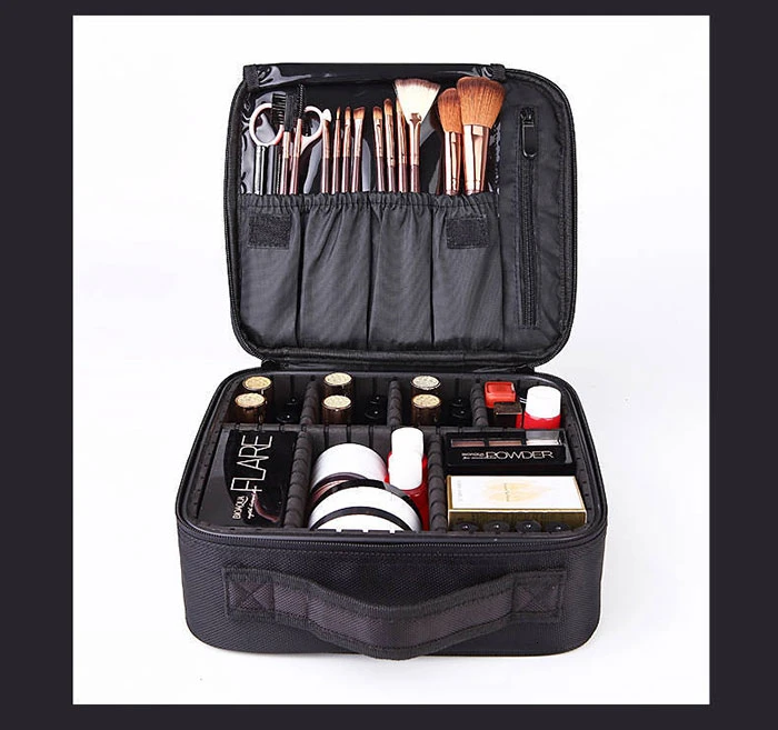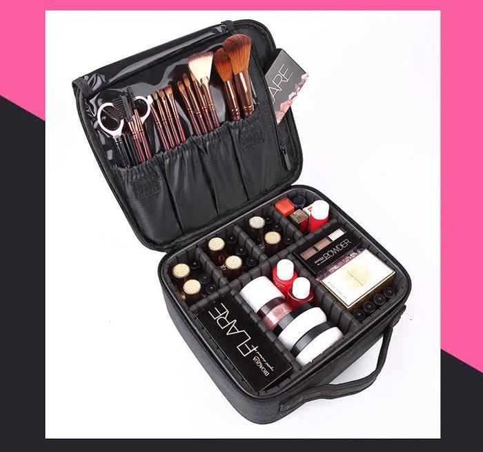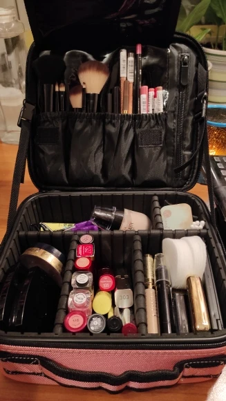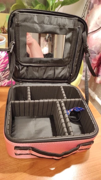 Это отличная покупка или подарок для любой женщины! Не встречала косметичку удобнее и функциональнее! Выбирая, пришла к выводу, что лучше взять дороже, но такую, чтоб быть довольной на 100%. И я не жалею о покупке, она ИДЕАЛЬНА! Держит форму (даже зеркало приехало целым благодаря этому), довольно вместительная (у меня из двух объемных косметичек все влезло в нее одну), красивый дизайн (что очень важно), рабочая молния, съемное зеркало, ремни фиксации крышки (благодаря этому можно смотреть в зеркало и краситься, при этом все под руками) удобная ручка для переноса, разбивание на ячейки отличное (можно сделать под себя), карманы для кистей и карандашей вообще меня покорили! Влезла даже большая палетка теней 23 на 14см и при этом косметичка смогла закрыться! Продавец отправил практически сразу после заказа, и до Москвы добралась посылка невероятно быстро! Очень рекомендую данный товар и продавца!
