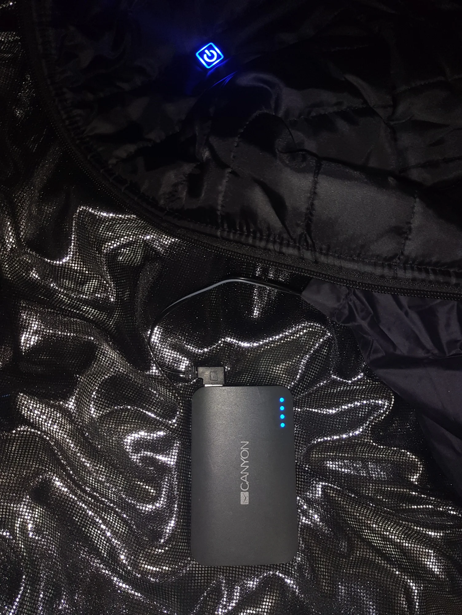 Хорошая куртка, работает. Пришла хорошо упакована. Работает режим подогрева (пригодился старый павербанк). Греет не плохо.