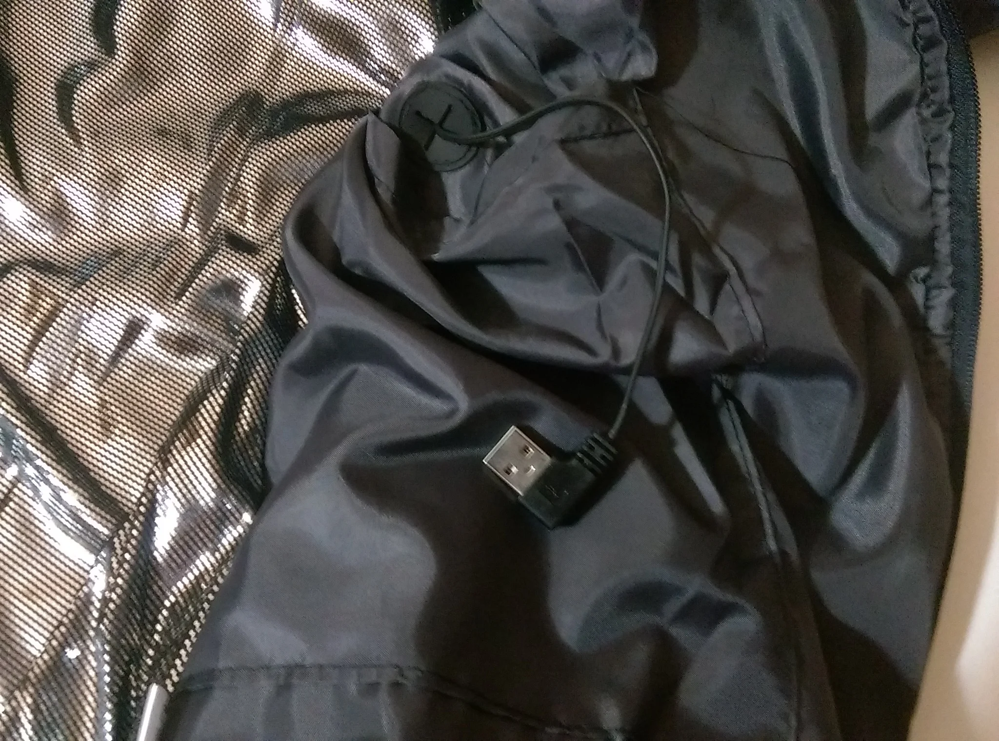 куртка очень тонкая. но села хорошо. но провода которые идут к павер банку очень тонкие!! и долго не прослужат