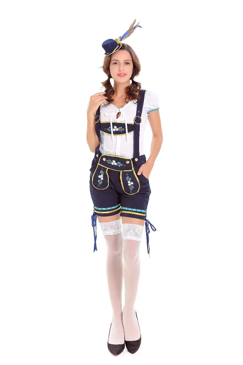 Делюкс Bavaria Okotberfest (-ый), в стиле ледерхозен брюки человек Для женщин фестиваль пива вечерние бар для девочек наряд горничной пива Октоберфест Костюм