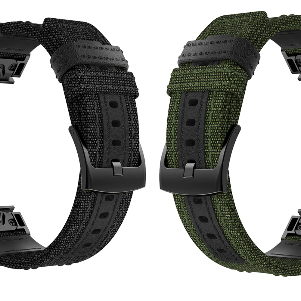 Ремешок из нейлона и кожи, 26 мм, для Garmin Fenix 5X, 5xplus, 6X, ...