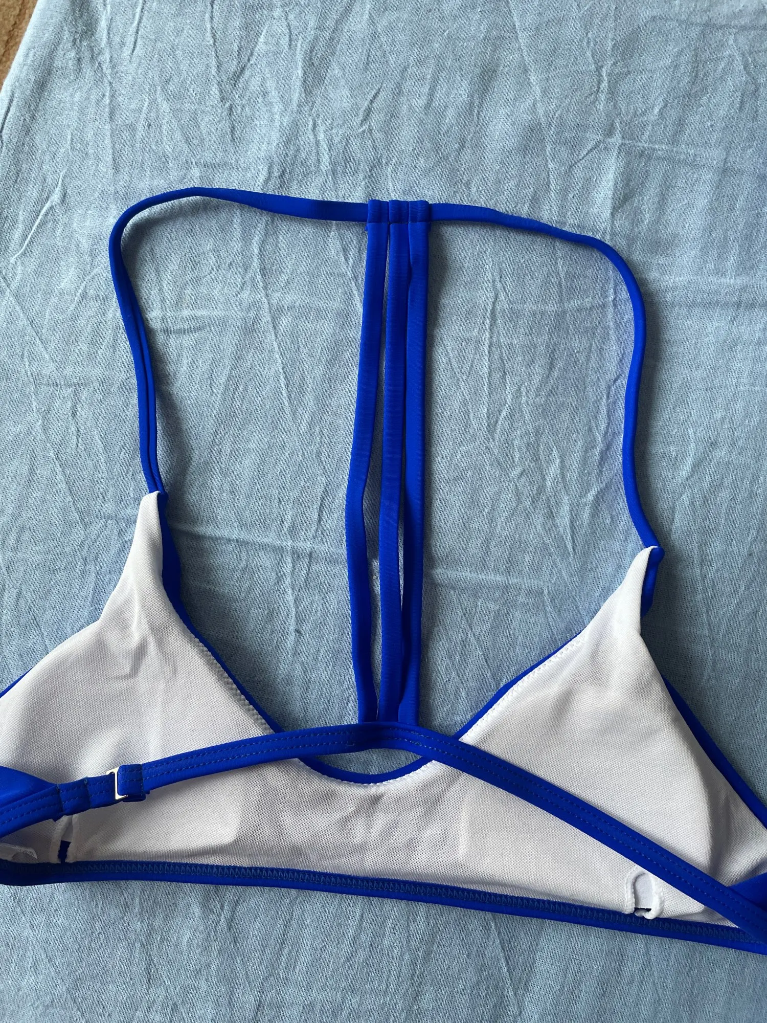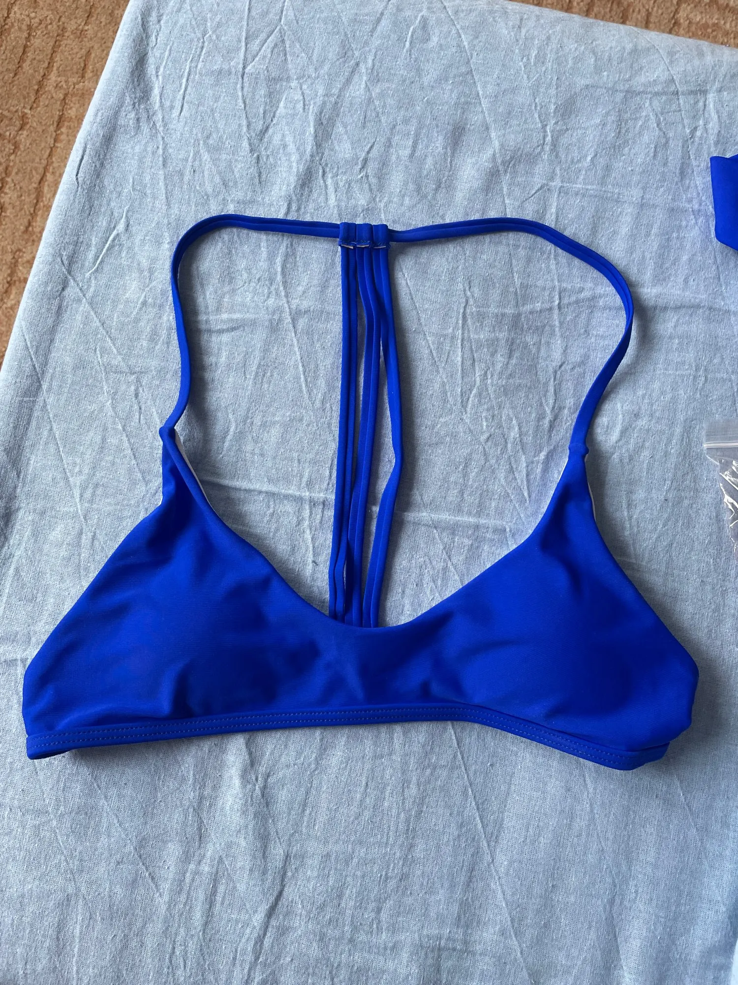 Это любовь!!!!! Очень насыщенный синий цвет. Сел отлично! Ровные швы без торчащих нитей. Единственный маленький минус для меня это то, что лямки не регулируются. Но это не страшно!! Однозначно всем рекомендую! Закажу ещё в другом цвете