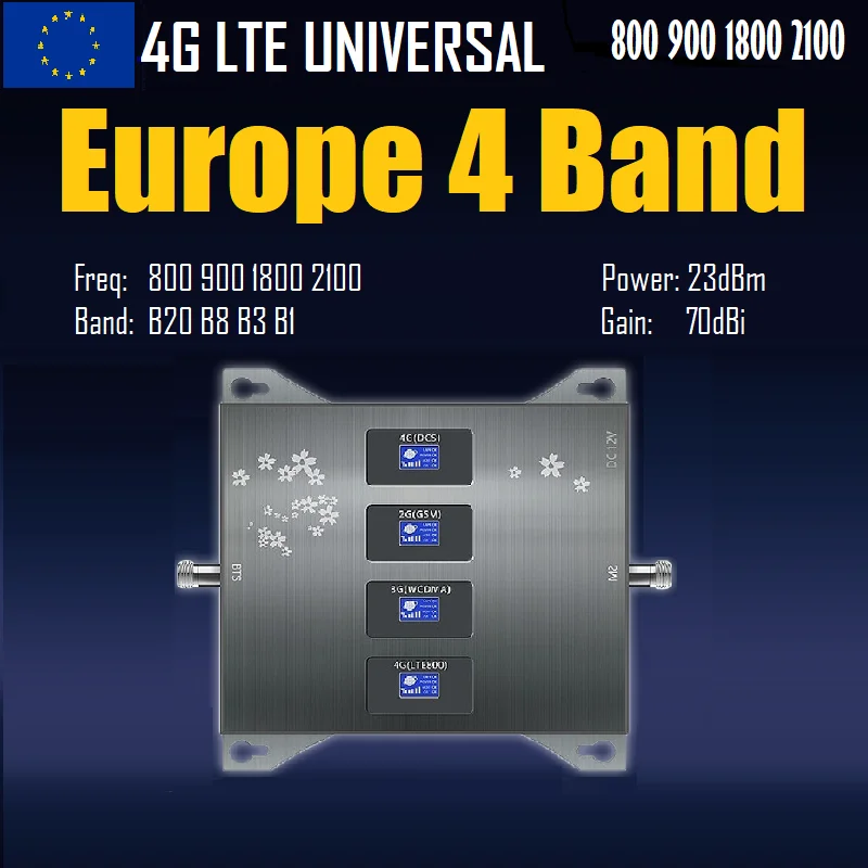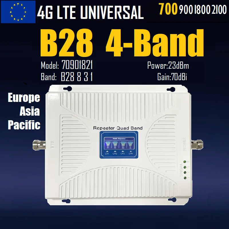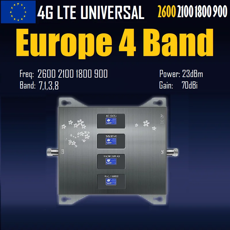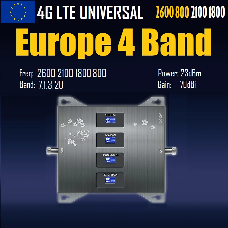 Усилитель мобильного сигнала 4G, 4 диапазона, LTE усилитель сигнала, ретранслятор GSM 2G 3G 4G, фотодиапазон 28 20 8 7 3 1 2600 2100 1800 900 850 800 700