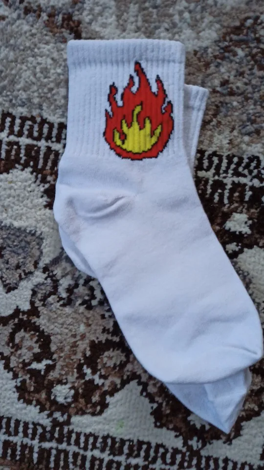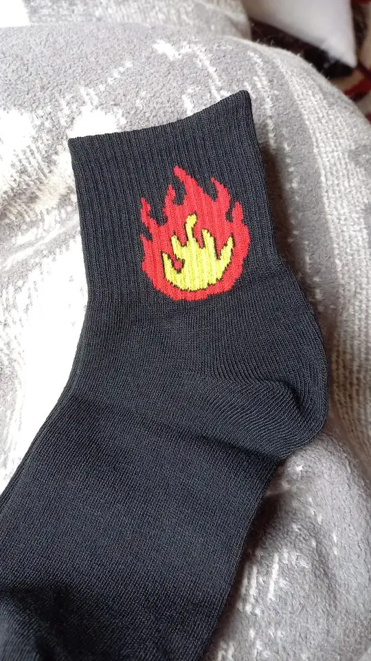 Летние женские короткие носки, корейские японские хлопковые носки Харадзюку с принтом пламени, забавные женские носки кактусовый пистолет для девочек