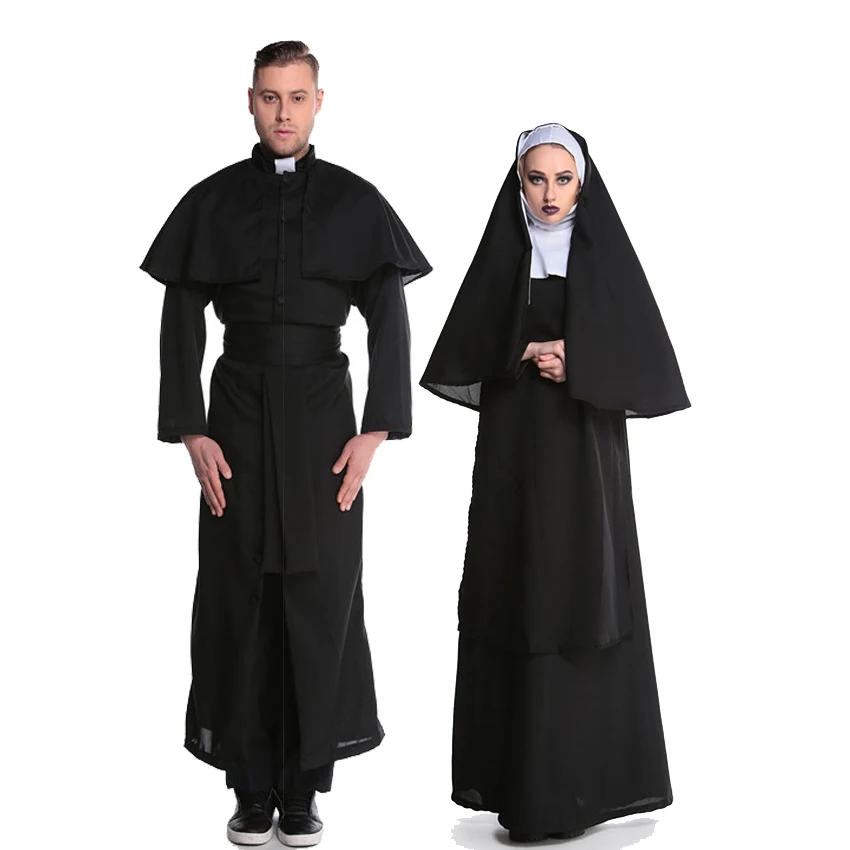 Роскошный женский костюм монахини, мужские костюмы для косплея миссионера, христианского клиргимана, священника, Иисуса