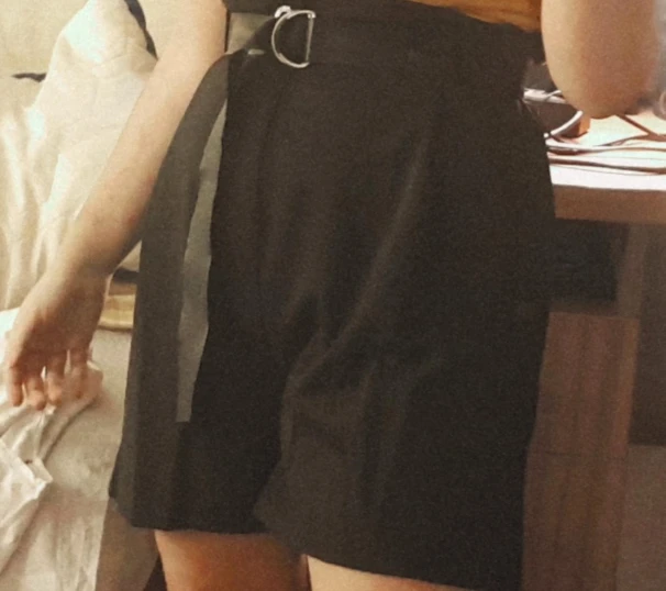 Шорты женские, до колена, на пуговицах, черные, широкие, повседневные, в Корейском стиле, модные, простые