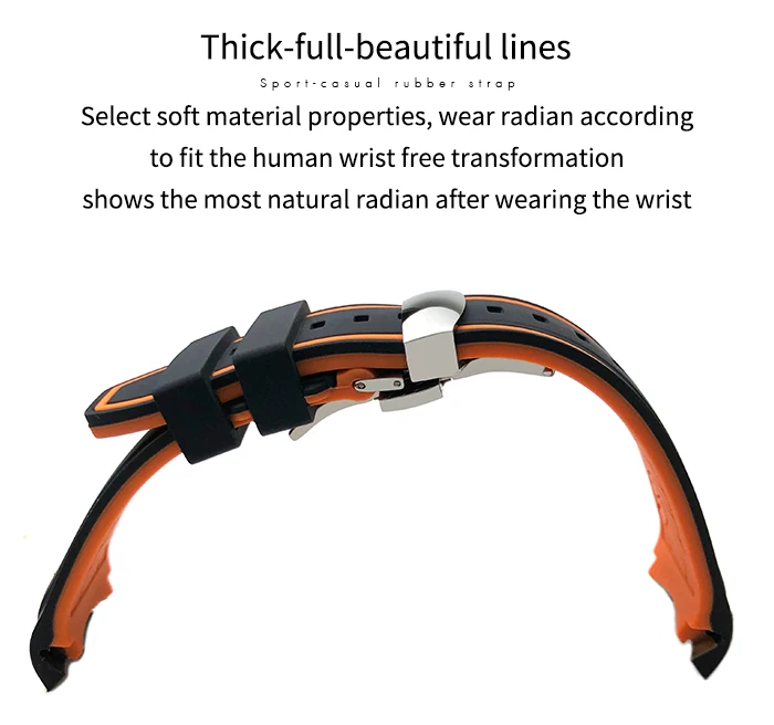 Ремешок резиновый силиконовый для часов, изогнутый водонепроницаемы...