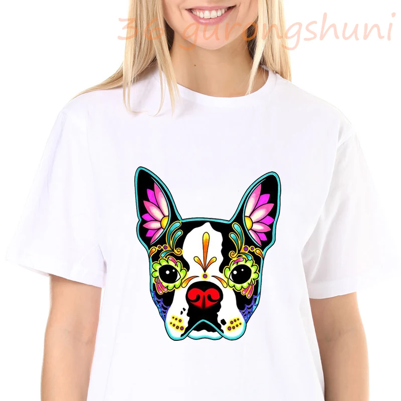 Женская одежда, футболка с рисунком Бостон-терьера, футболки с графическим принтом коровы, топы, футболки с принтом готического Арта, собаки, топы, женская одежда 2021, футболки в стиле Харадзюку