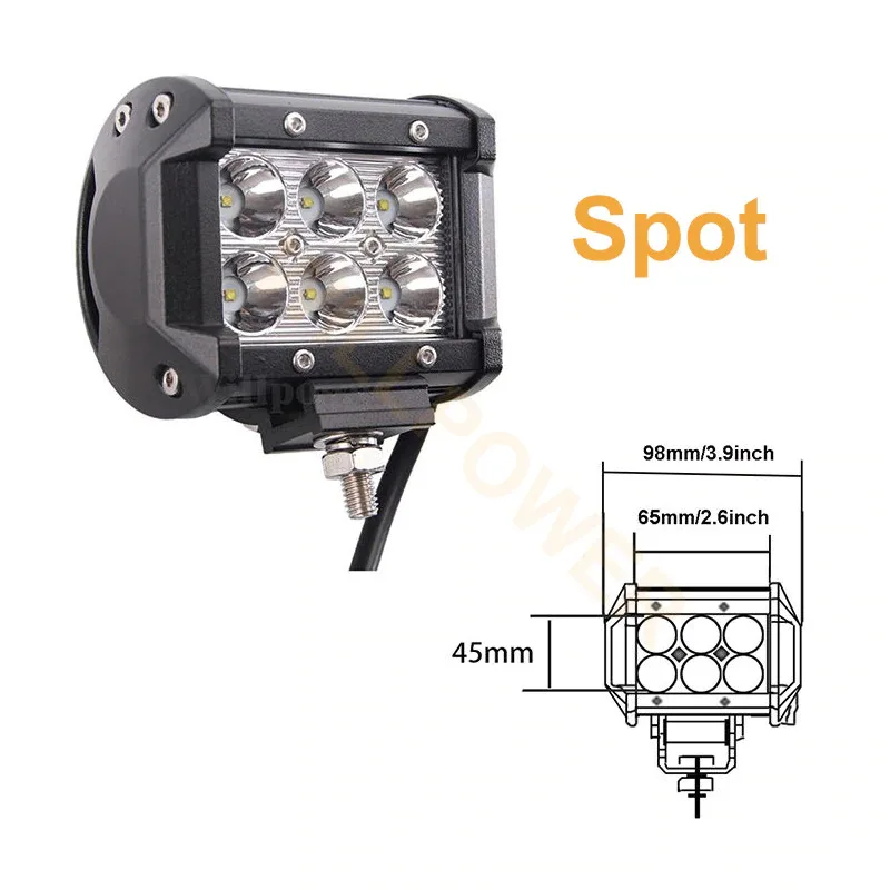 Спецификация: Мощность: 18 Вт Напряжение: 9-32 В Теоретический Световой поток: 1800 лм Рабочий Световой поток: 1260 лм Светодиодный: 6 шт. * 3 Вт (XBD 3535 светодиодный) Размер: 99*73*107 мм (4 дюйма) Луч: точечный луч, луч потока Светодиодный Цветовая температура: 6500K Срок службы: 50000 часов Рабочая температура: -45 °C ~ + 60 °C Степень водонепроницаемости: IP67