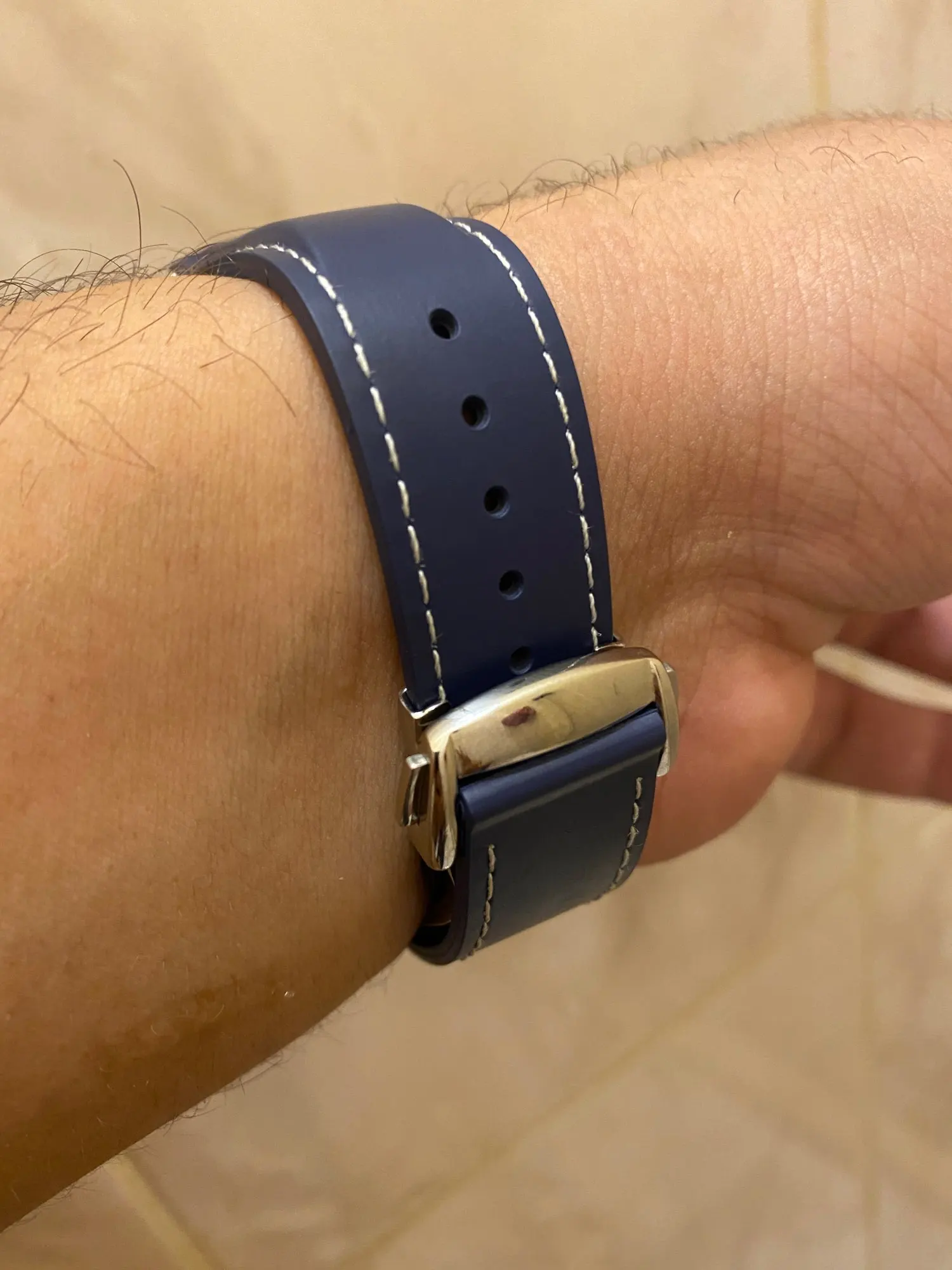 Спасибо за ремешок. Застежка достойная, качество приятное, на ощупь не ощущается как силикон. В комплект продавец положил инструмент для смены. Сидит на часах, как родной. В общем, рекомендую продавца.